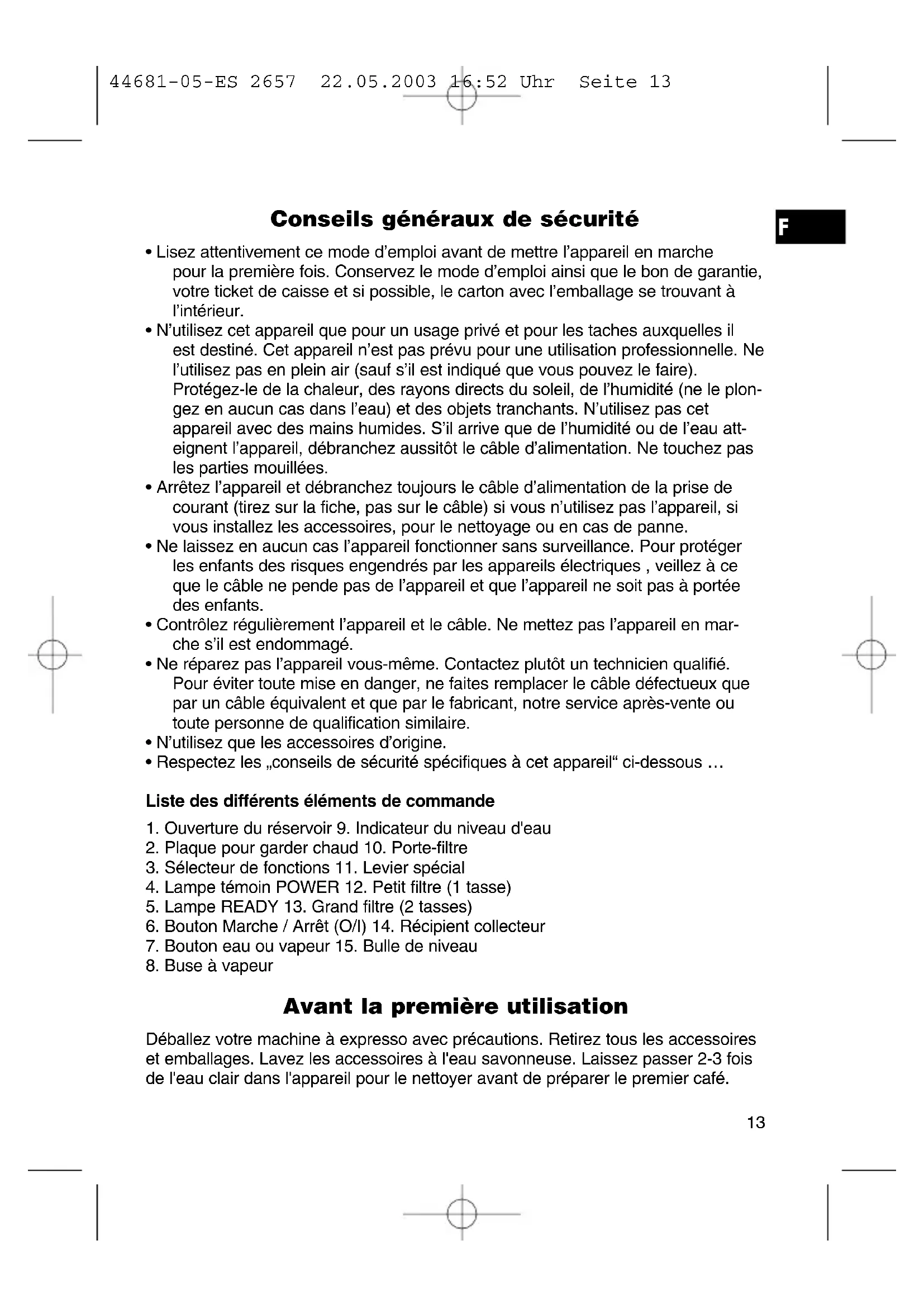 44681-05-ES 2657 22.05.2003 16:52 Uhr Seite 12Conseils généraux de sécurité