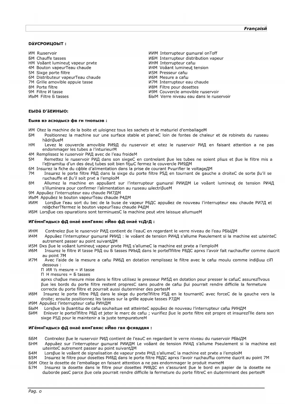 déborde pas, parce que cela pourrait rendre difficile la fermeture du porte filtre, en déterminant des pertes.Pag. 9 Français