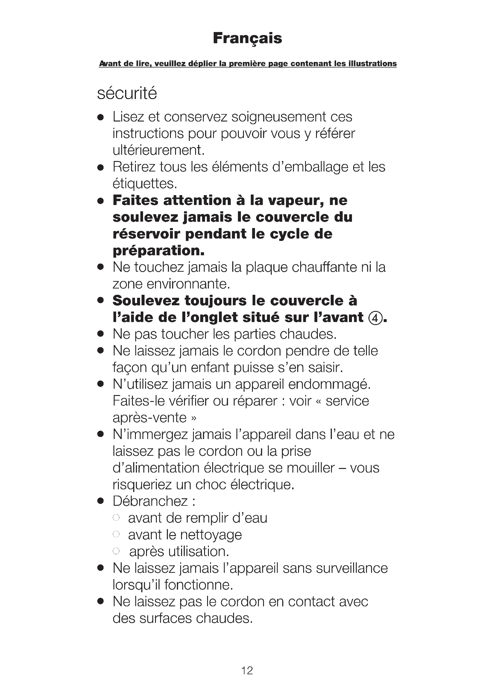 vant de lire, veuillez déplier la première page contenant les illustrations sécurité