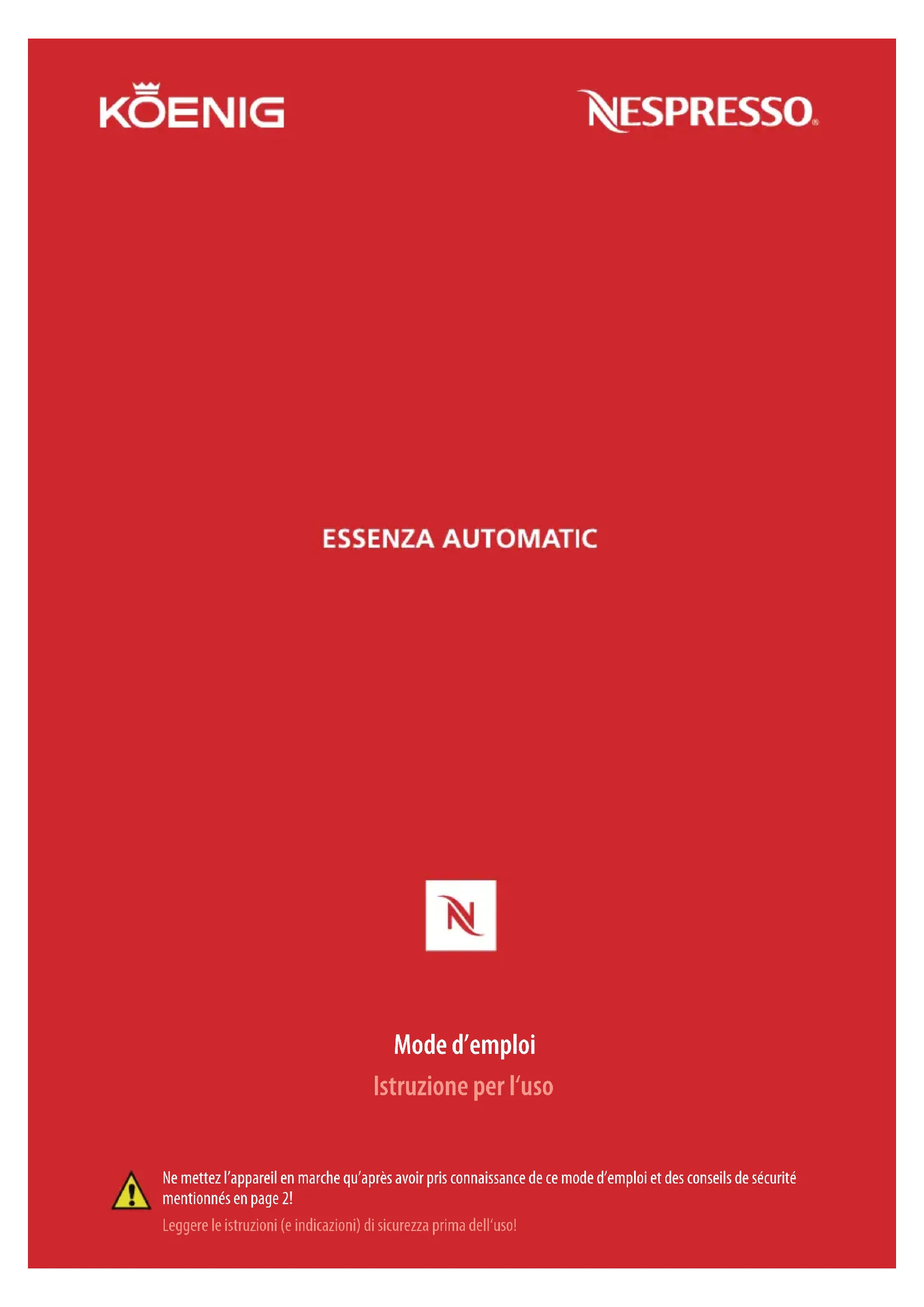 Nespresso Essenza Automatic - Machine à café KOENIG - Notice d'utilisation et mode d'emploi gratuit