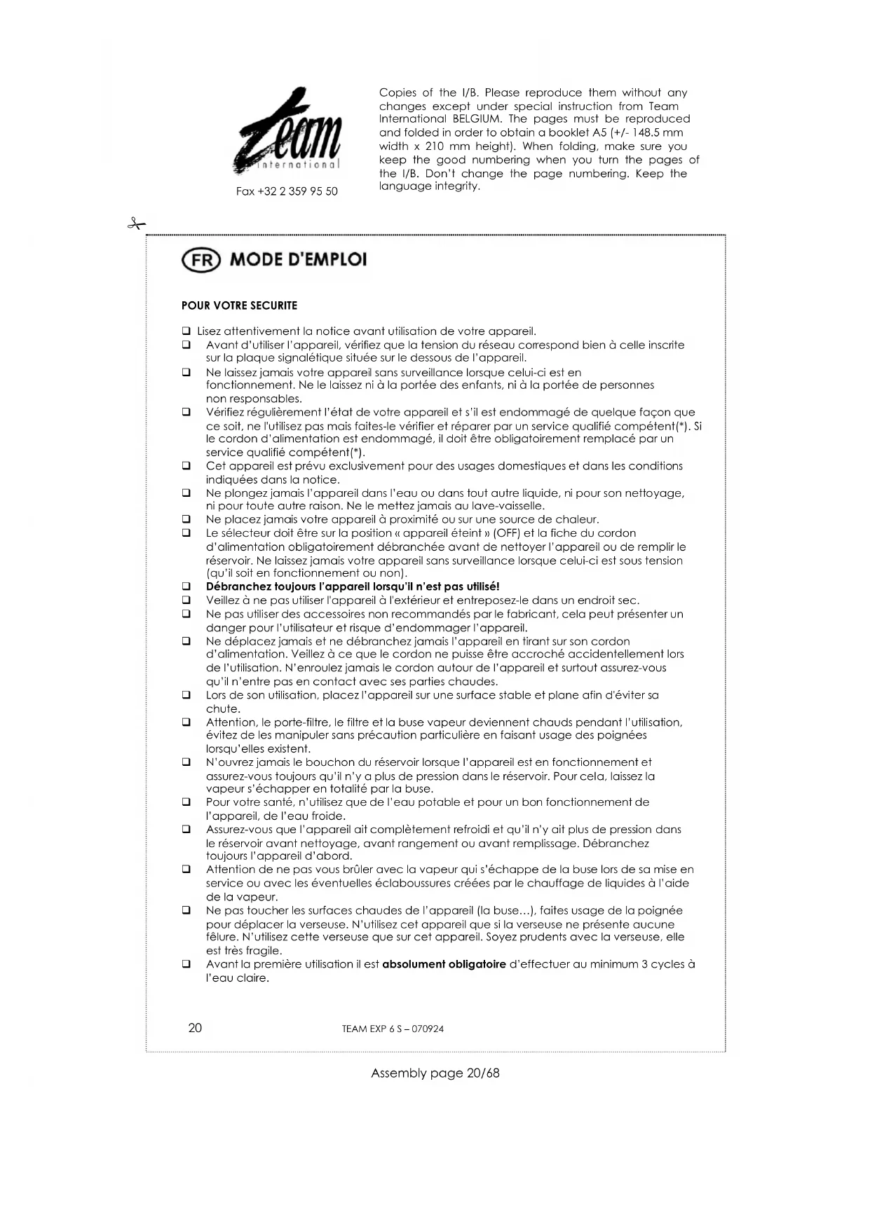 Retrouvez gratuitement la notice de l'appareil EXP 6 S TEAM au format PDF.