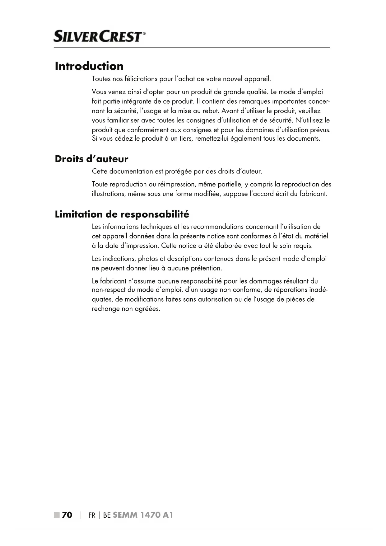 FOIRE AUX QUESTIONS - SEM 1100 B3 SILVERCREST