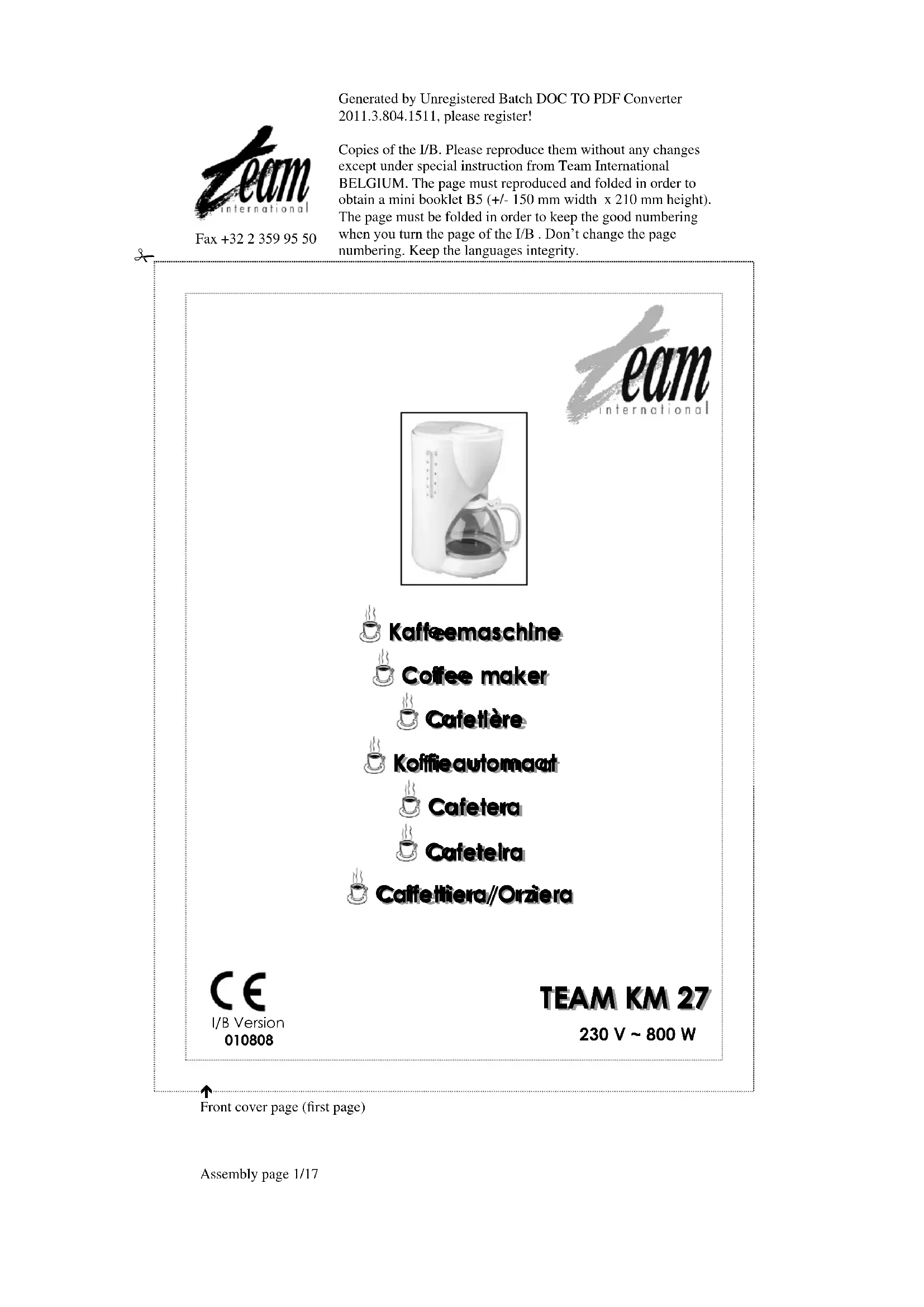 KM 27 - Machine à café TEAM - Notice d'utilisation et mode d'emploi gratuit