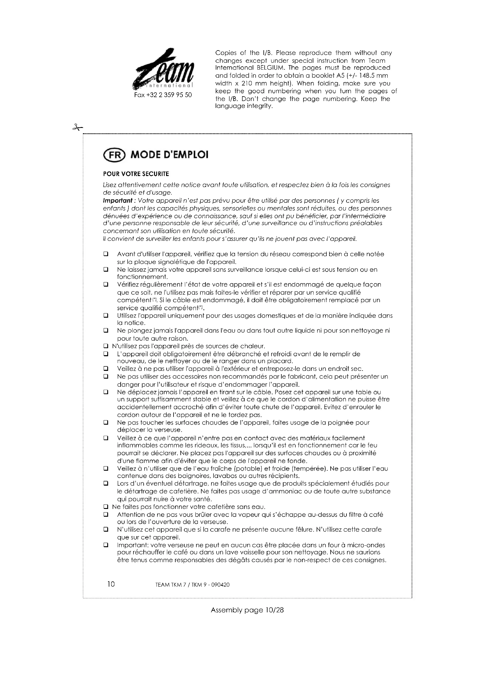 Retrouvez gratuitement la notice de l'appareil TKM 9 TEAM au format PDF.