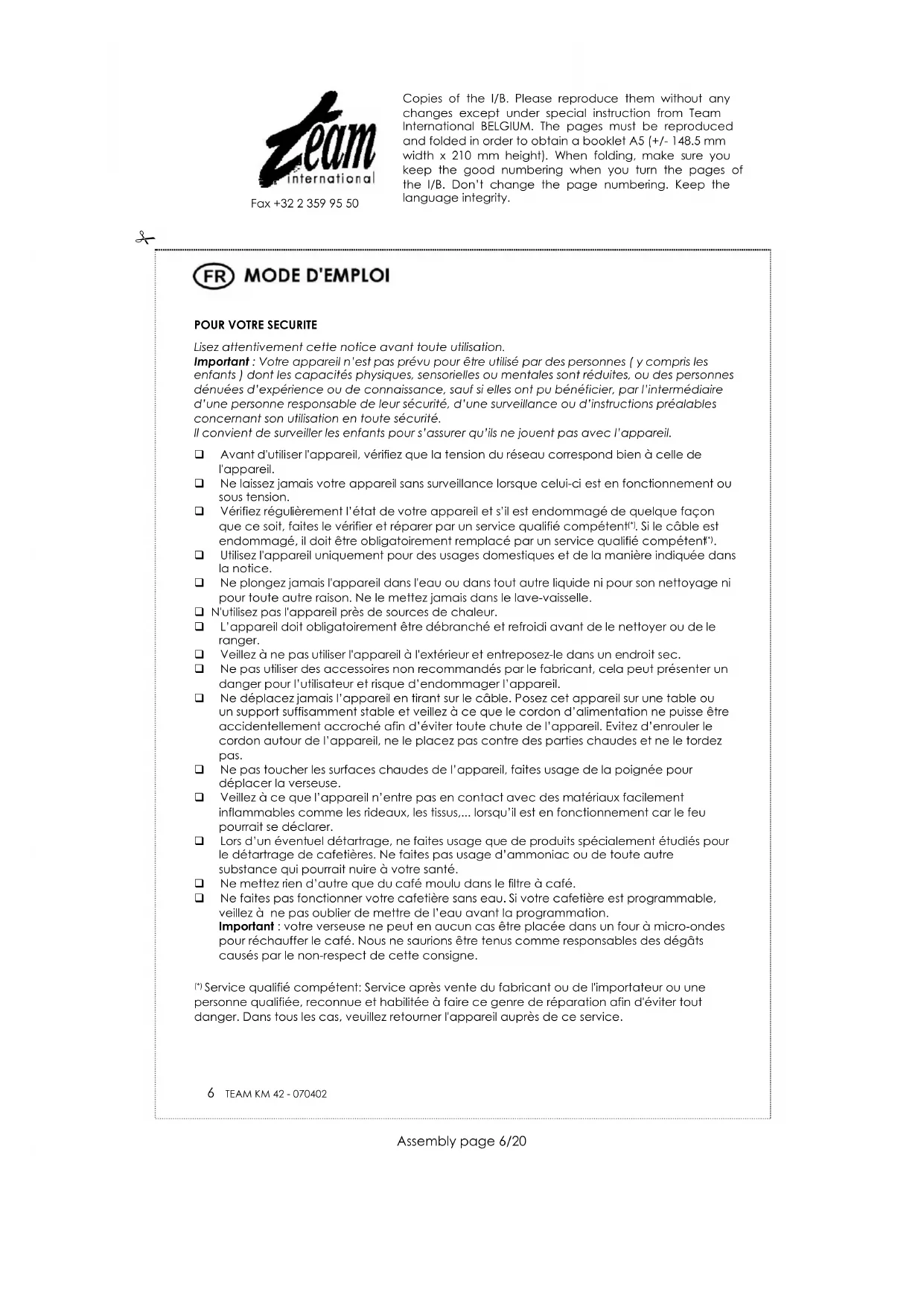 KM 42 - Machine à café TEAM - Notice d'utilisation et mode d'emploi gratuit