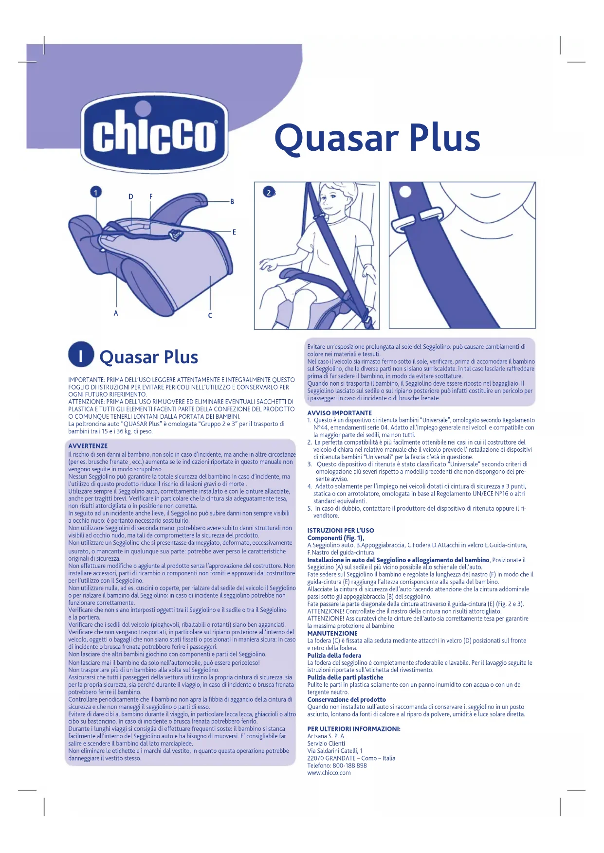 Quasar Plus - Siège de voiture CHICCO - Notice d'utilisation et mode d'emploi gratuit