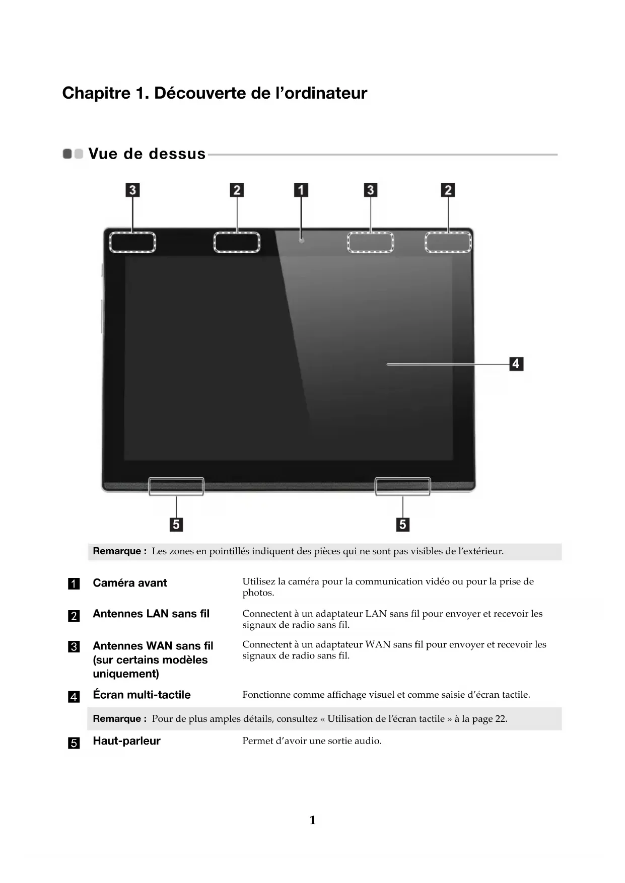 - Les illustrations ne sont que pour référence, veuillez vous reporter au produit que vous possédez.Chapitre 1. Découverte de l’ordinateur