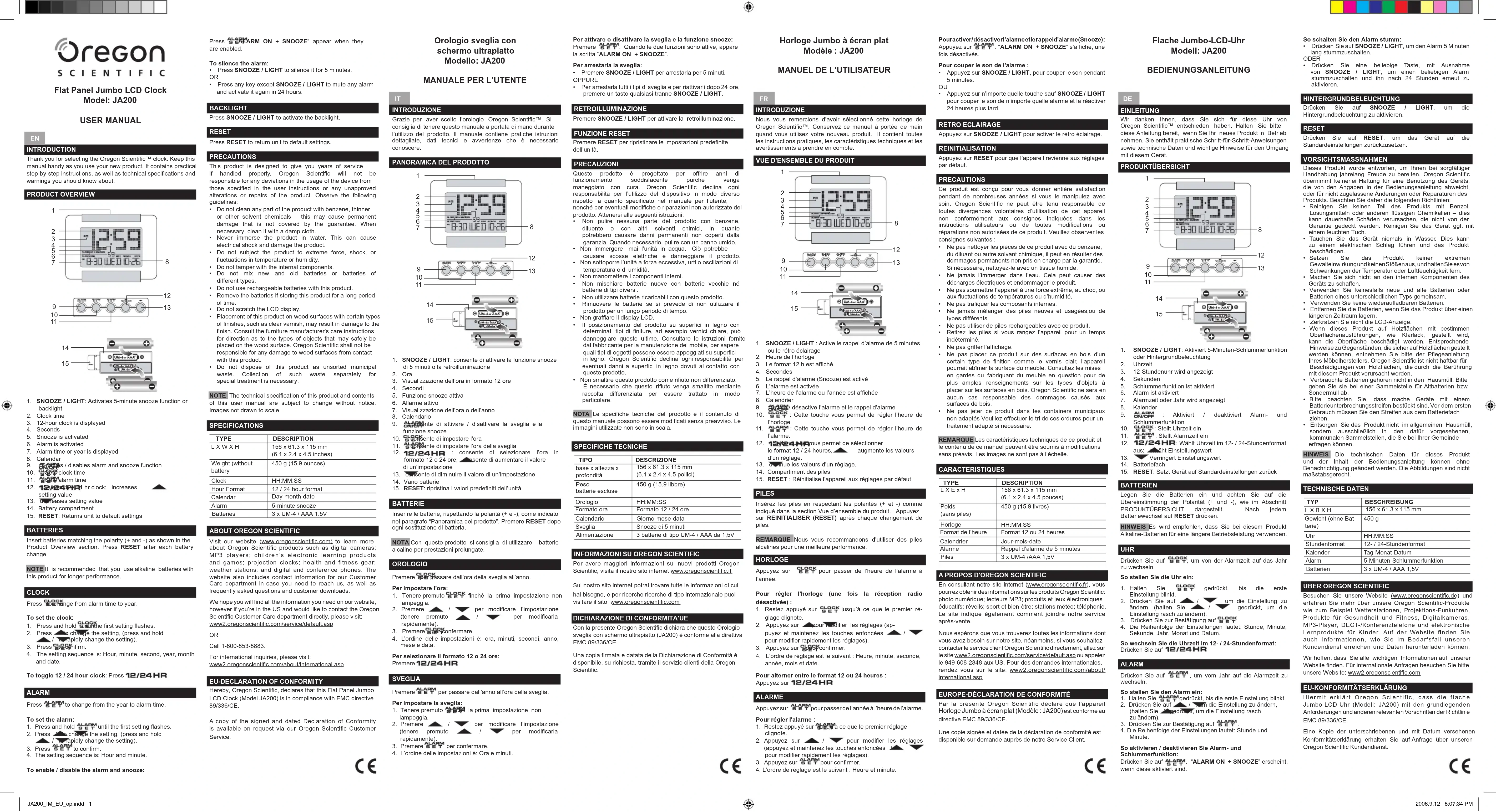 Téléchargez la notice de votre Horloge au format PDF gratuitement ! Retrouvez votre notice JA200 - OREGON SCIENTIFIC et reprennez votre appareil électronique en main. Sur cette page sont publiés tous les documents nécessaires à l'utilisation de votre appareil JA200 de la marque OREGON SCIENTIFIC.