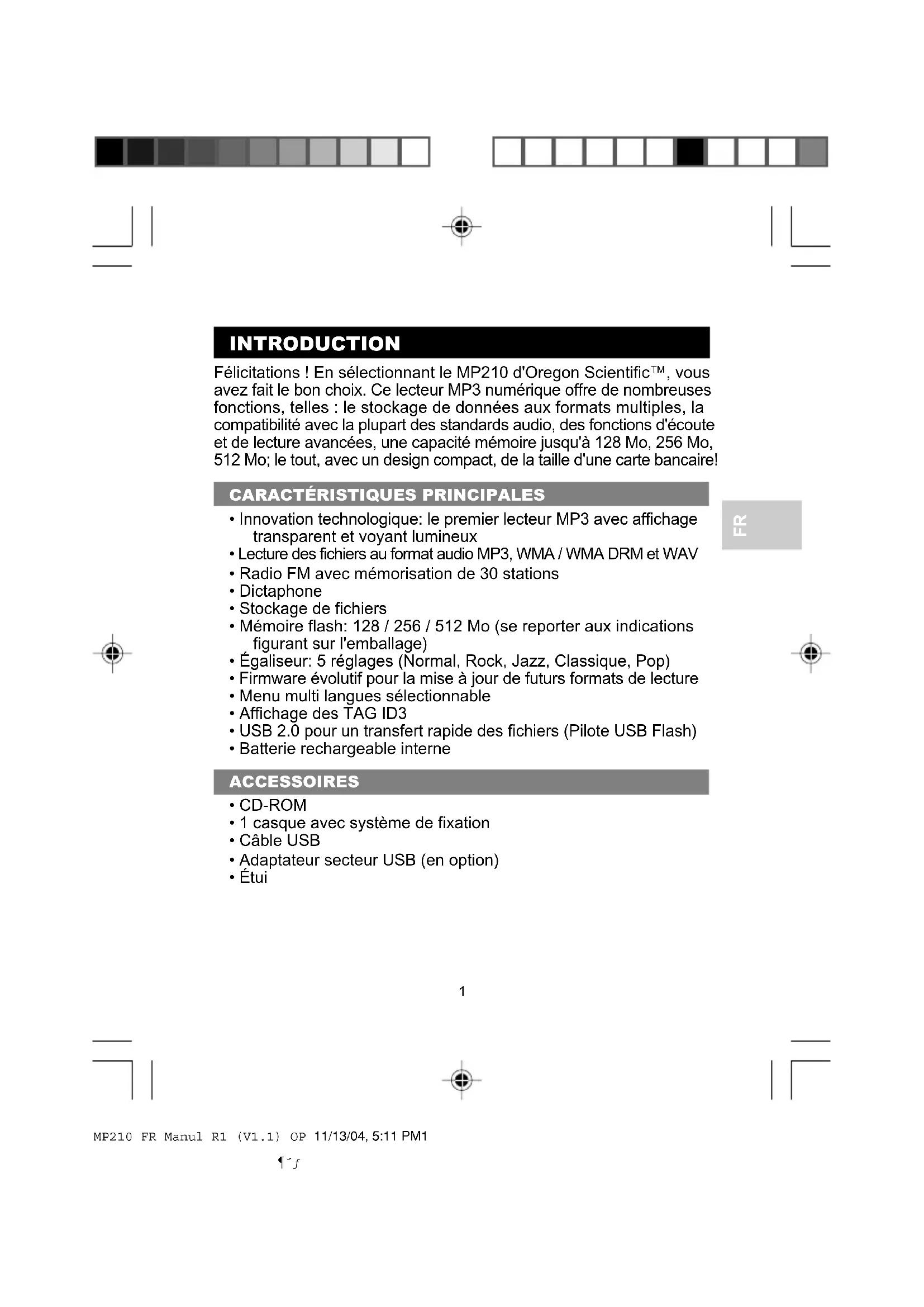 INTRODUCTION Félicitations ! En sélectionnant le MP210 d'Oregon Scientific