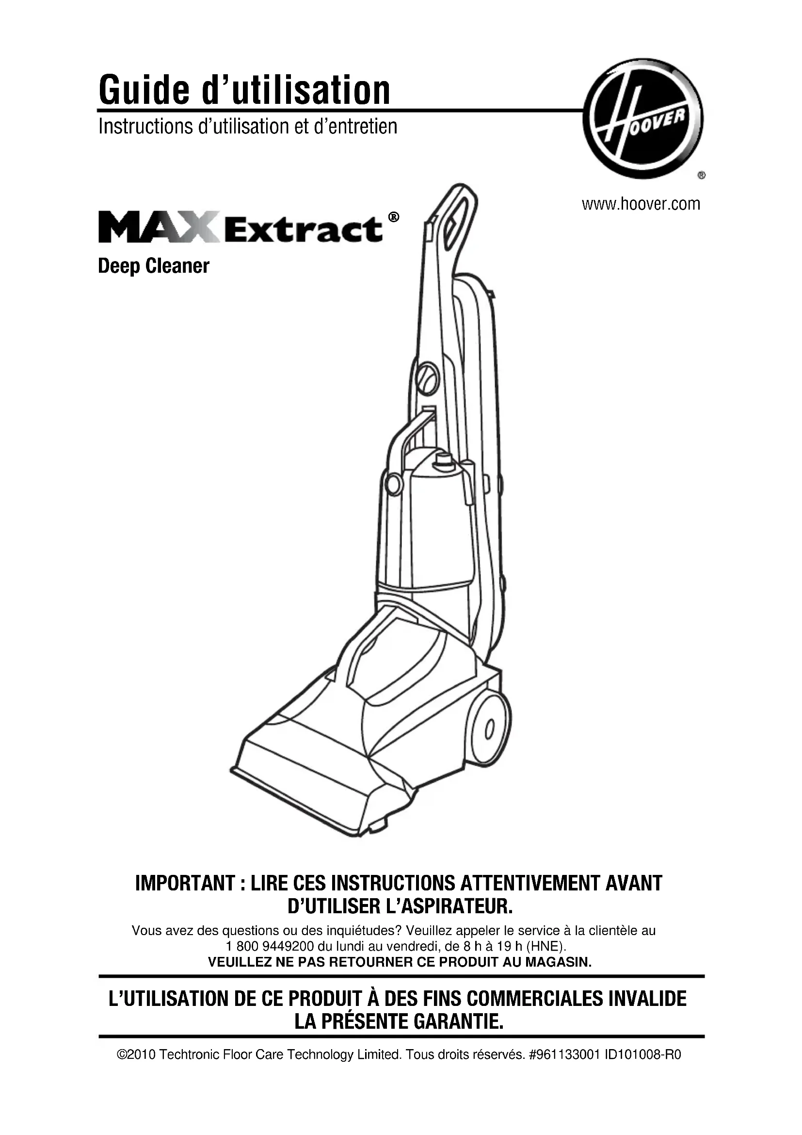 Retrouvez gratuitement la notice de l'appareil Max Extract 77 Deep Cleaner HOOVER au format PDF.
