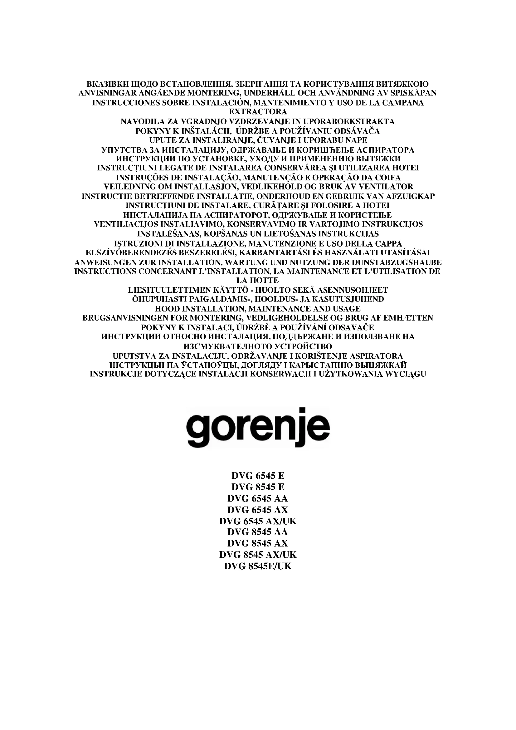 Retrouvez gratuitement la notice de l'appareil DVG8545E GORENJE au format PDF.