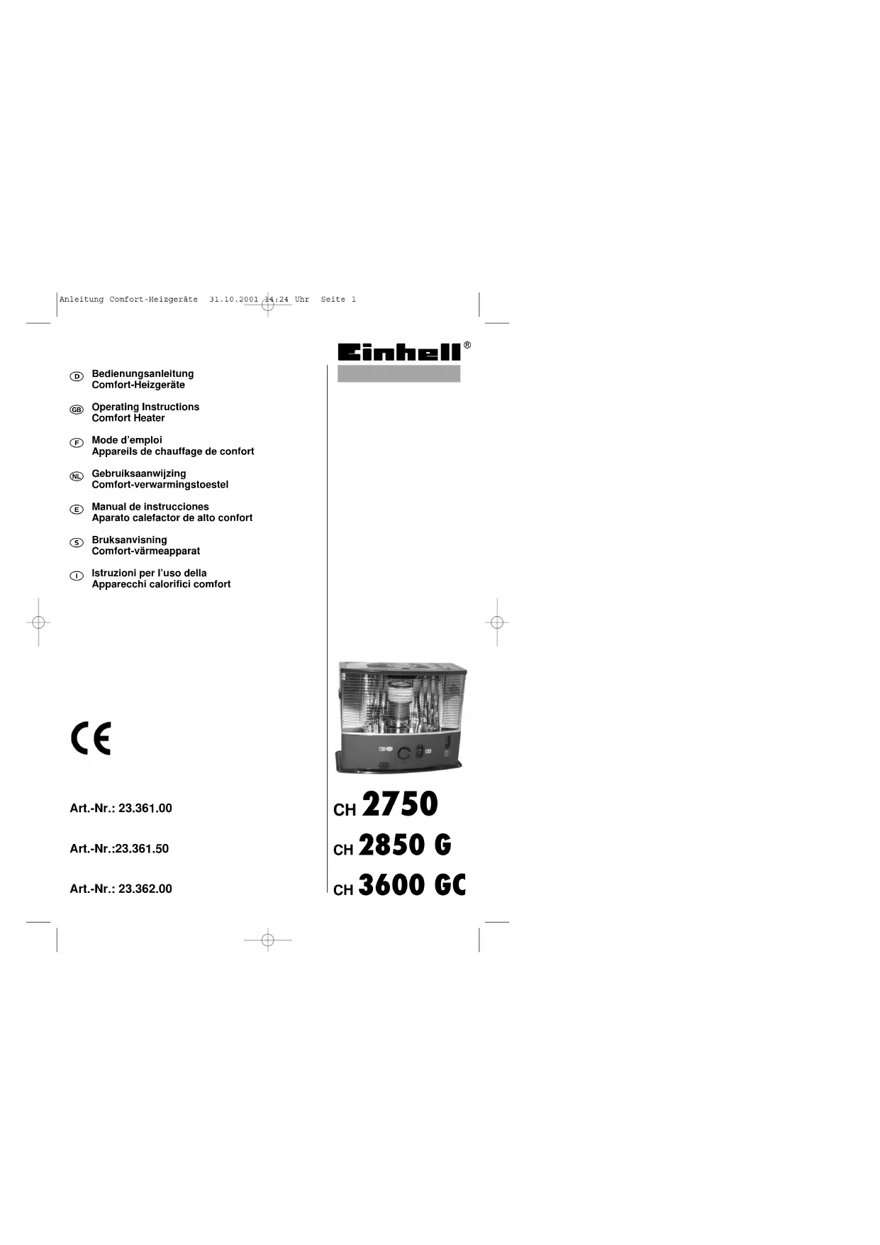 CH 2750 - Chauffage EINHELL - Notice d'utilisation et mode d'emploi gratuit