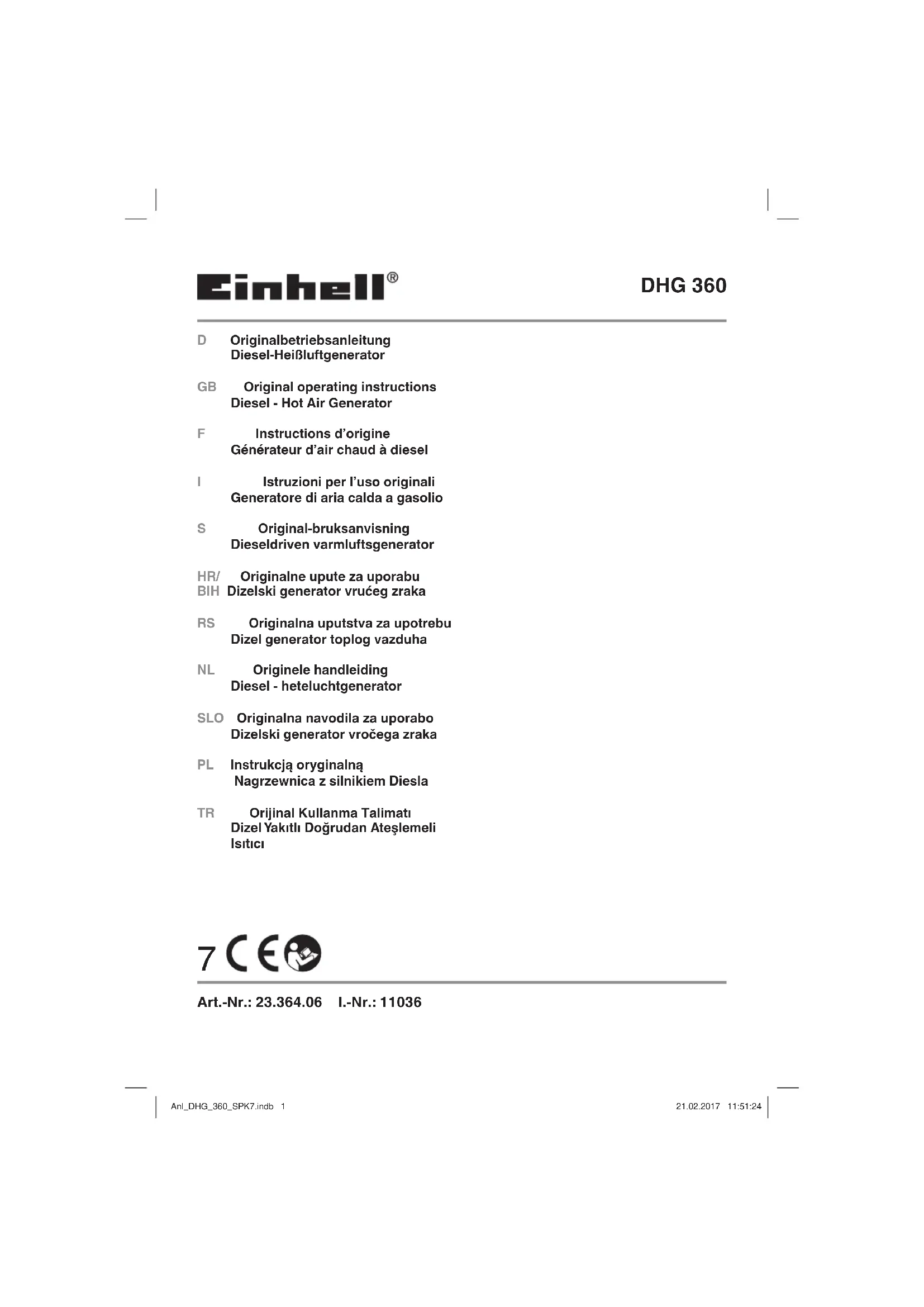 Retrouvez gratuitement la notice de l'appareil DHG 360 EINHELL au format PDF.