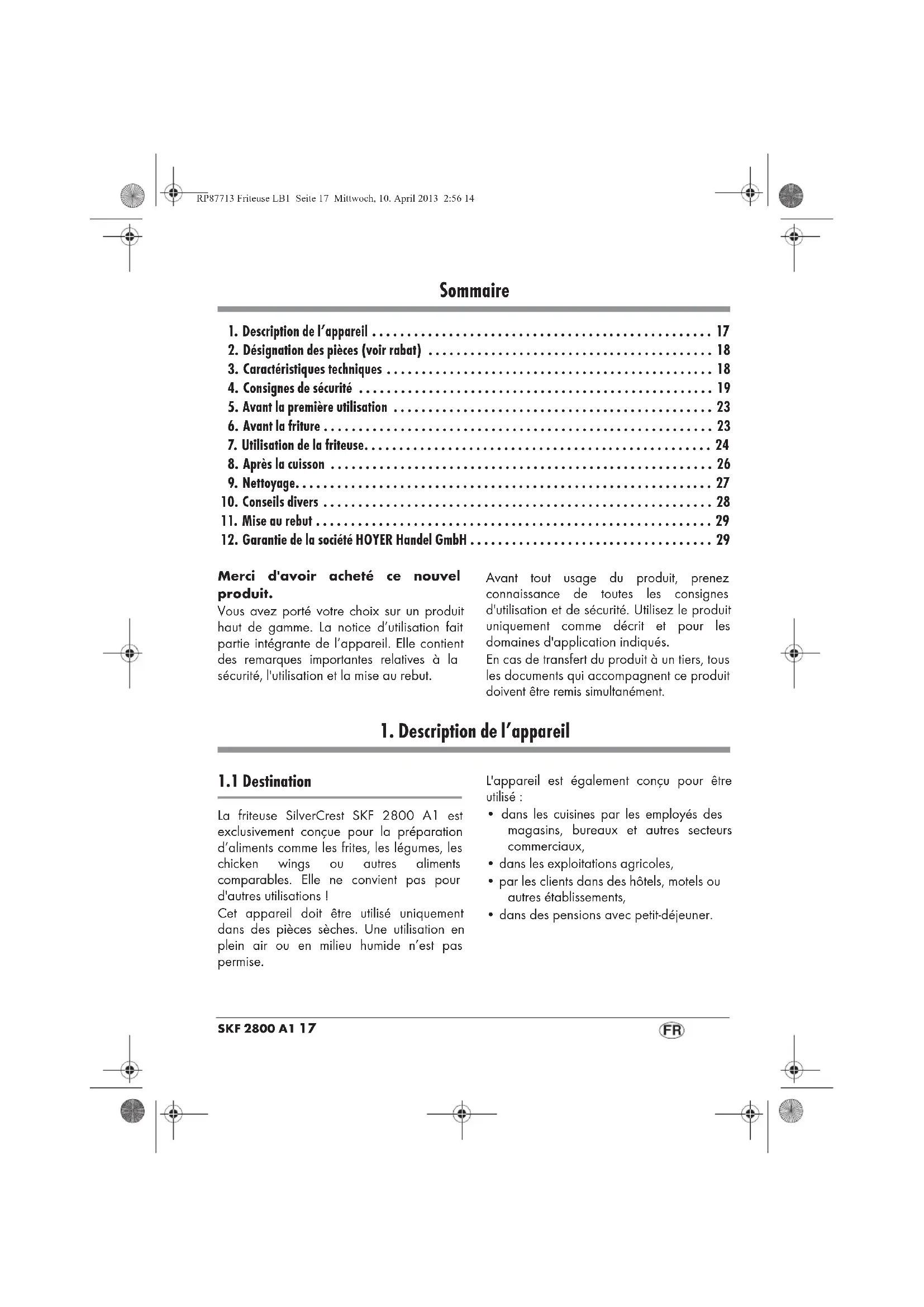 Retrouvez gratuitement la notice de l'appareil SKF 2800 A1 SILVERCREST au format PDF.