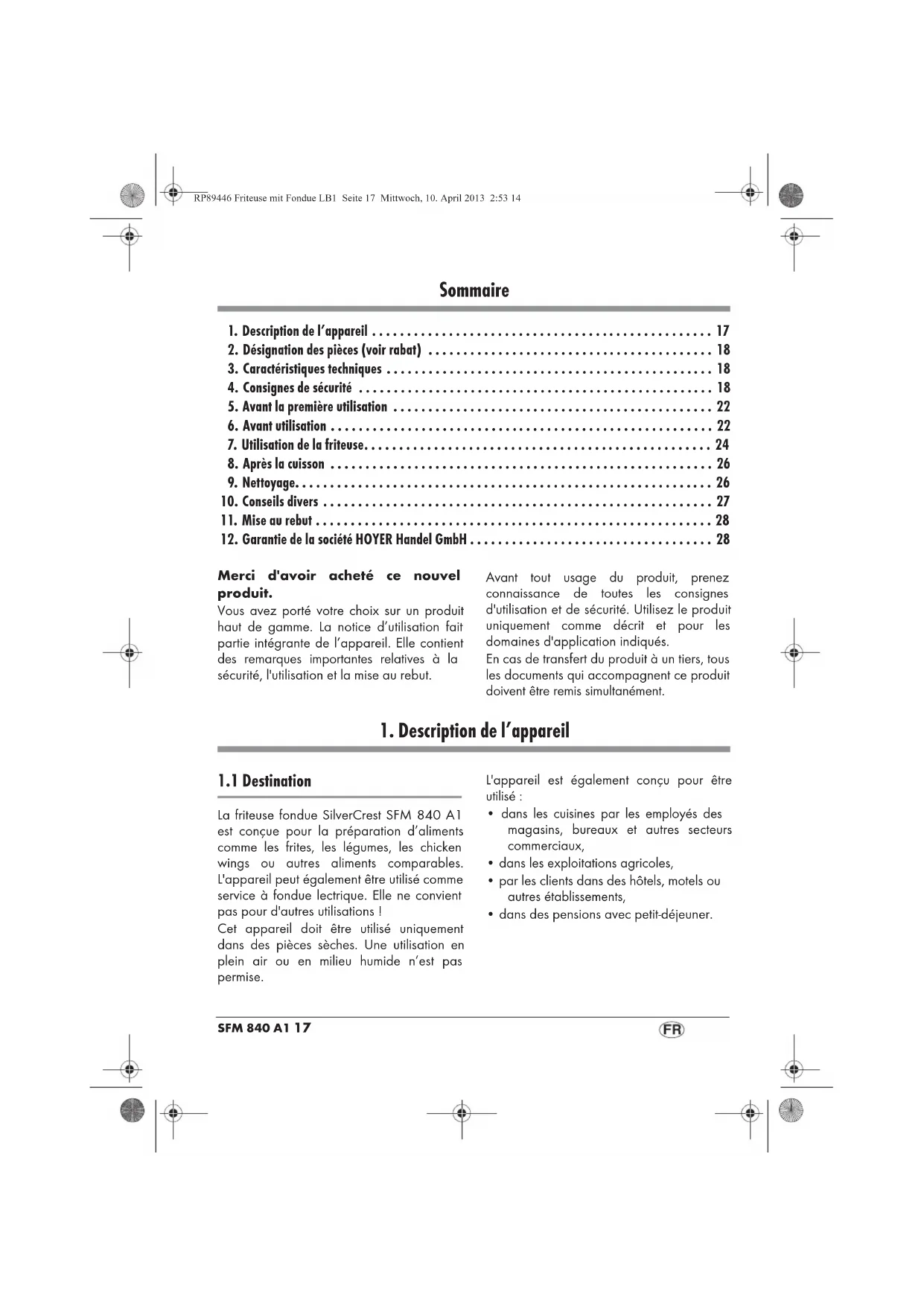 - dans des pensions avec petit-déjeuner. RP89446 Friteuse mit Fondue LB1 Seite 17 Mittwoch, 10. April 2013 2:53 1418