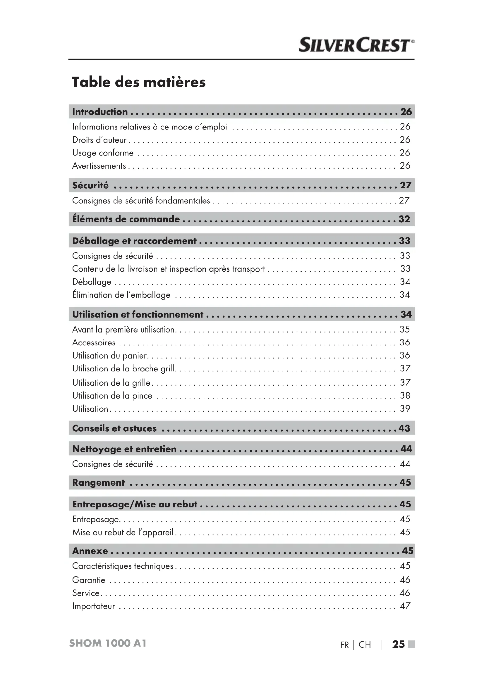 Retrouvez gratuitement la notice de l'appareil SHOM 1000 A1 SILVERCREST au format PDF.