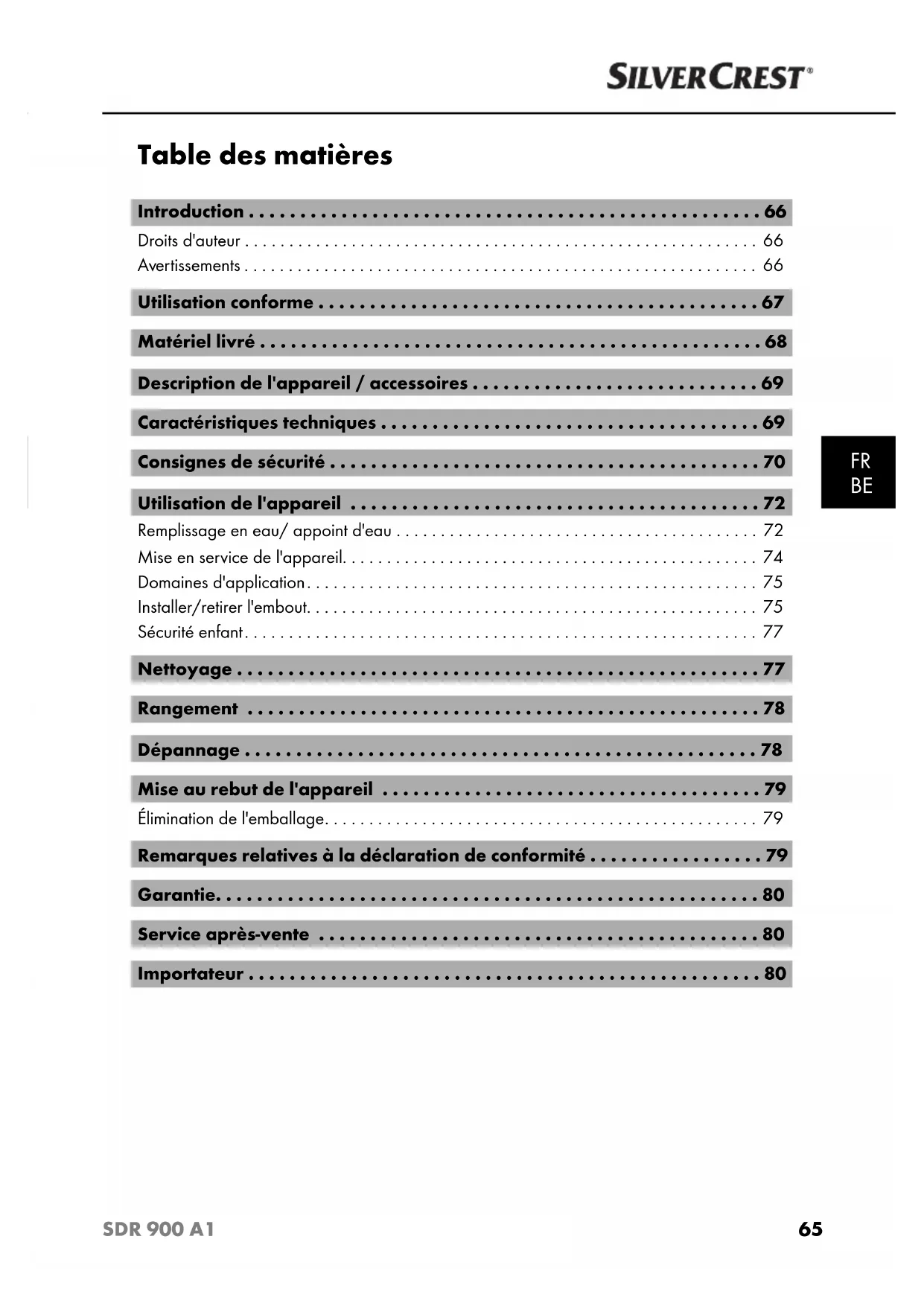- Importateur IB_103808_SDR900A1_LB3.indb 65IB_103808_SDR900A1_LB3.indb 65 10.11.14 08:4710.11.14 08:4766 SDR 900 A1 p. 80