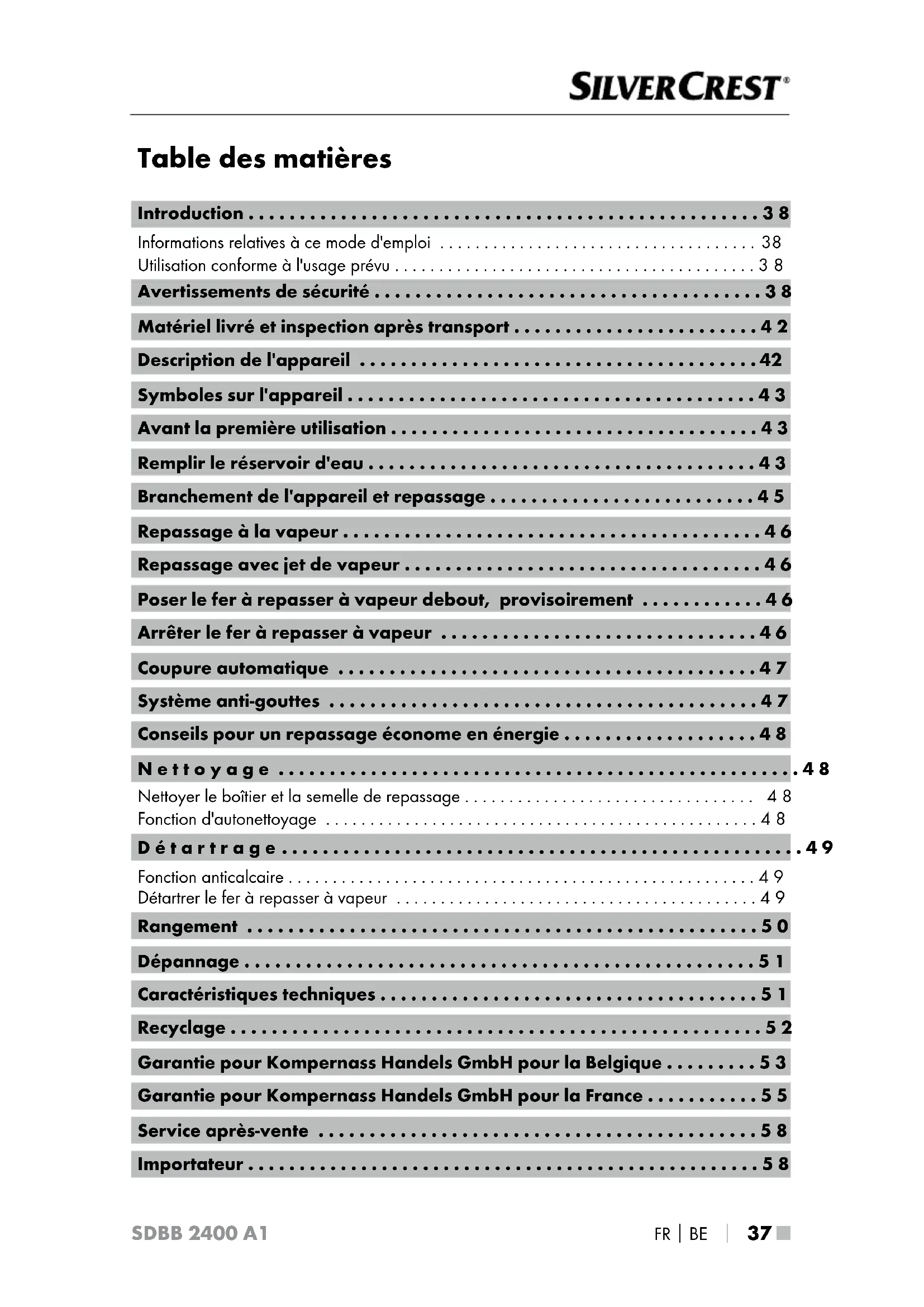 - Garantie pour Kompernass Handels GmbH pour la Belgique p. 53