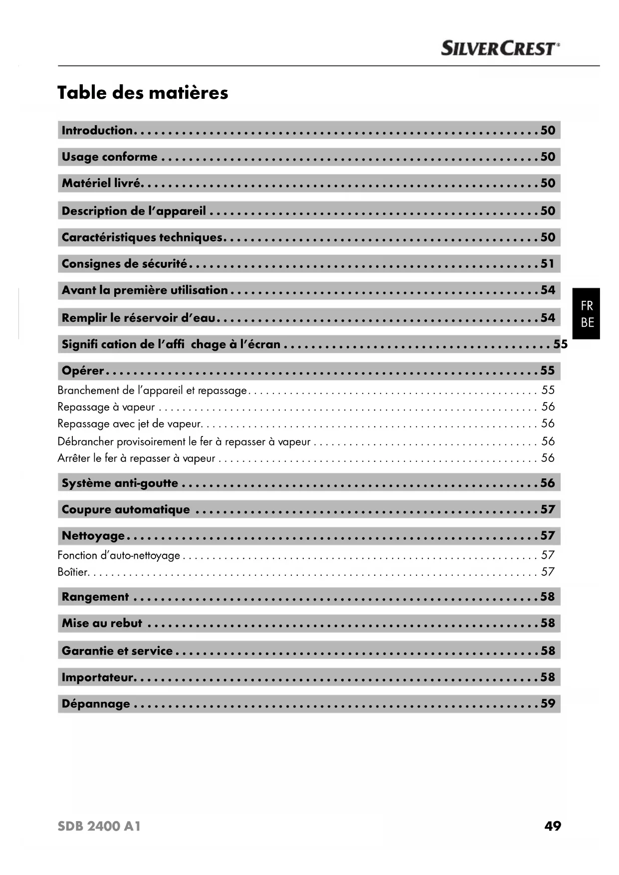 SDB 2200 D2 - Fer à repasser SILVERCREST - Notice d'utilisation et mode d'emploi gratuit