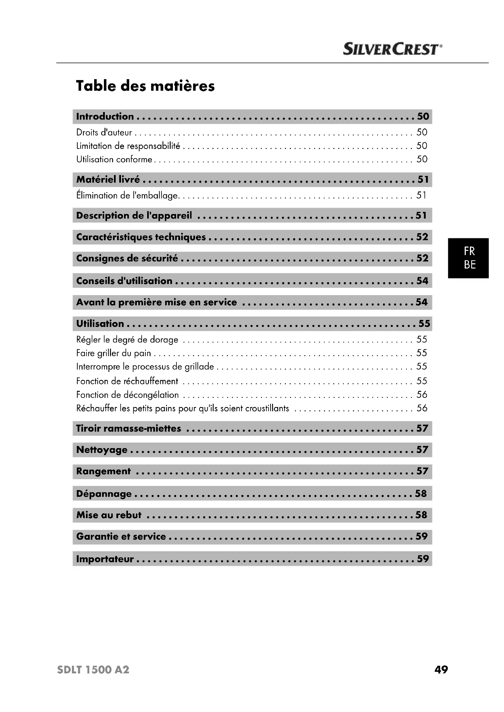 SDLT 1500 A2 - Grille-pain SILVERCREST - Notice d'utilisation et mode d'emploi gratuit