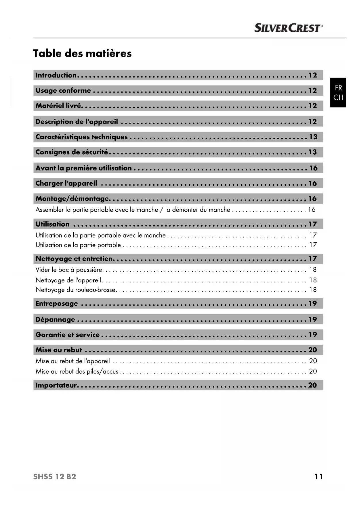 SHSS 12 B2 - Aspirateur SILVERCREST - Notice d'utilisation et mode d'emploi gratuit