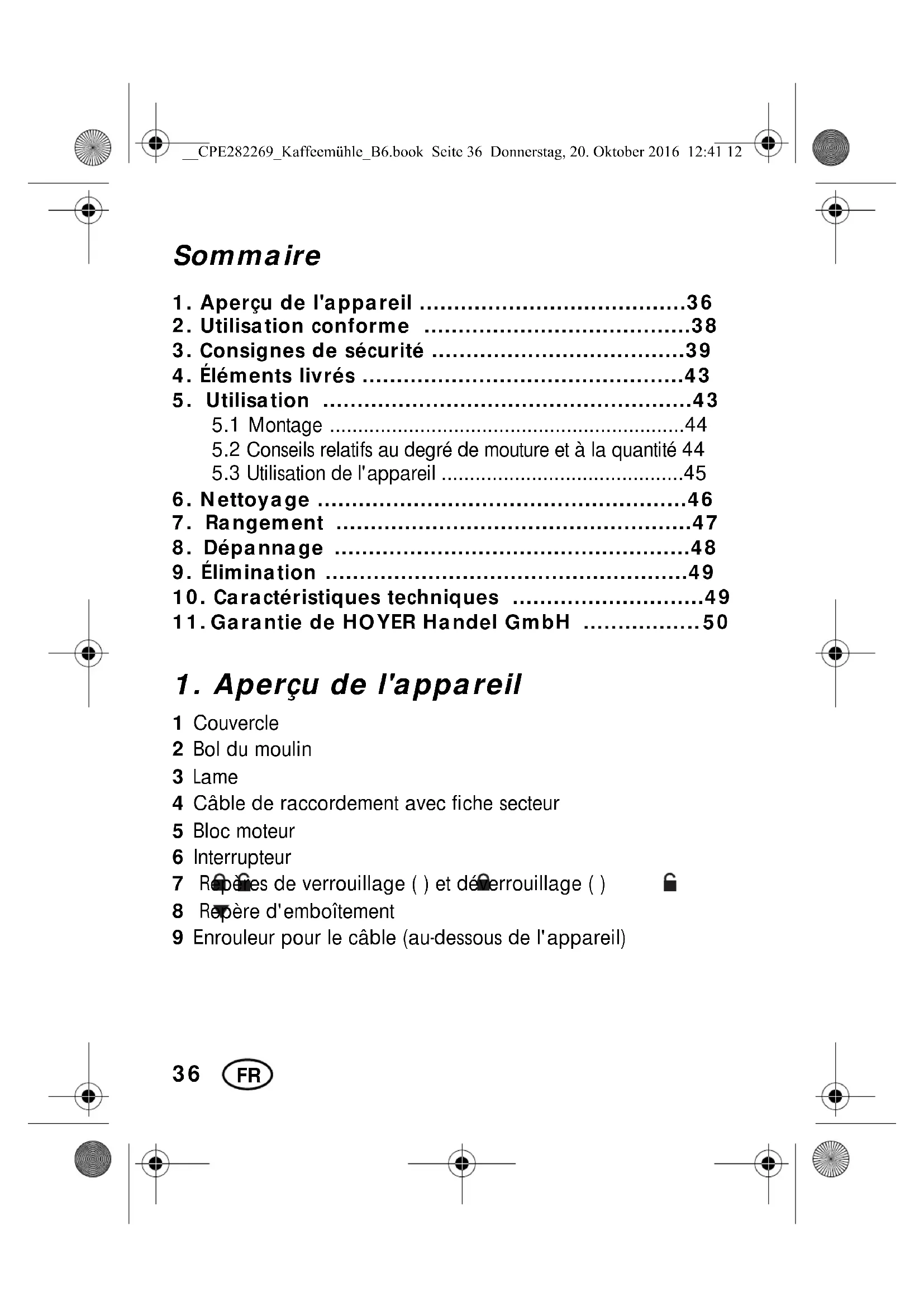 ... lorsque l'appareil est sans surveillance, ... avant d'assembler ou de démonter l'appa- reil et ... avant de nettoyer l'appareil.