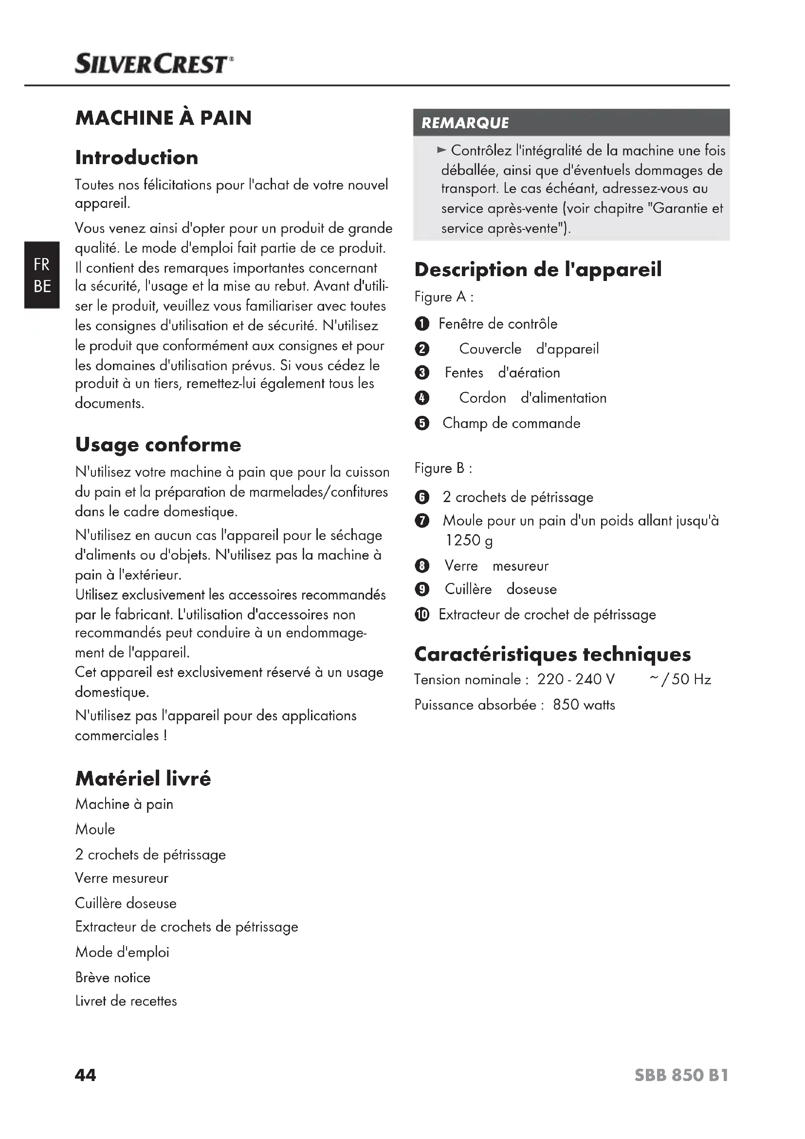 MODE D'EMPLOI SBB 850 B1 SILVERCREST
