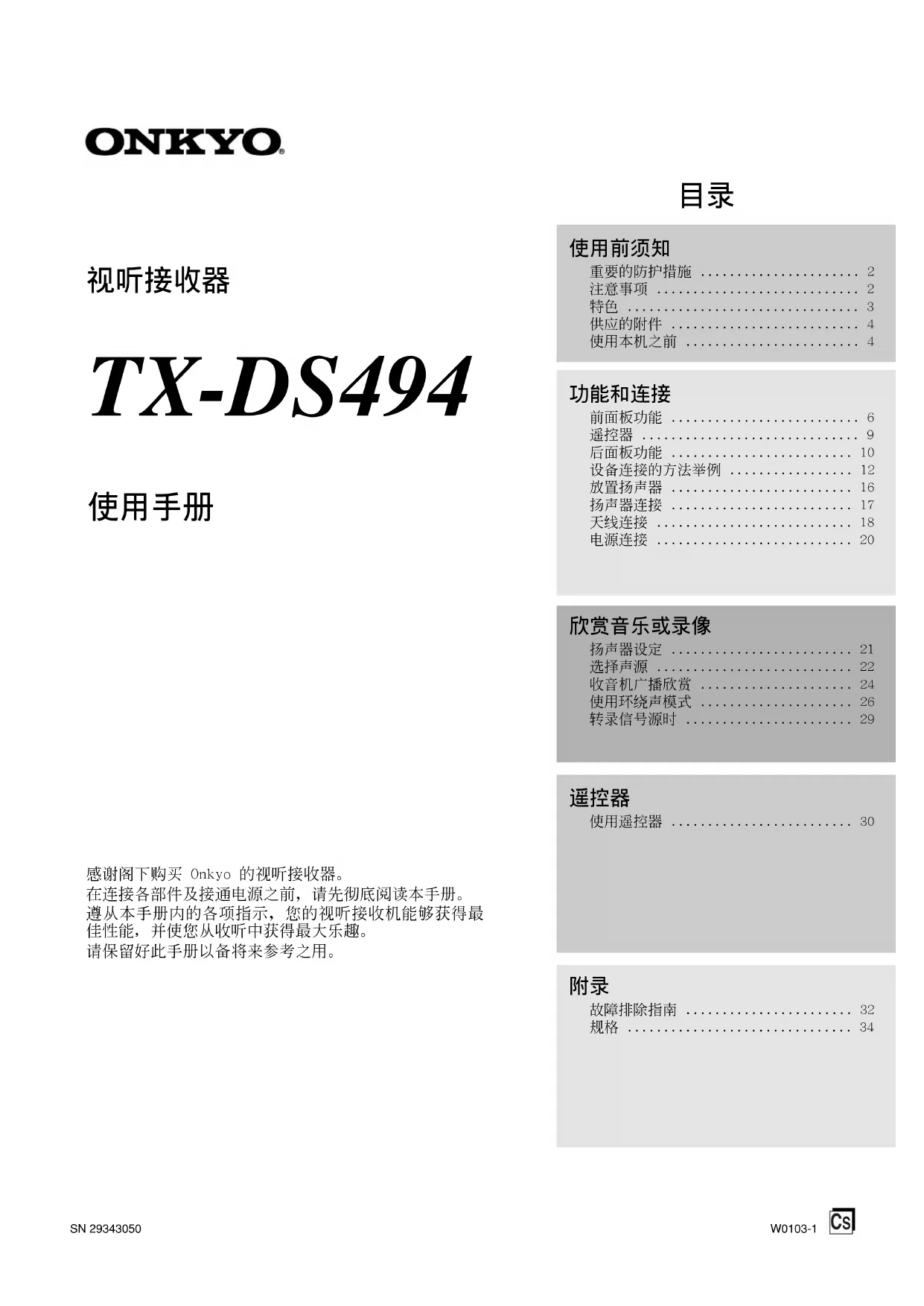 Retrouvez gratuitement la notice de l'appareil TXDS494 ONKYO au format PDF.