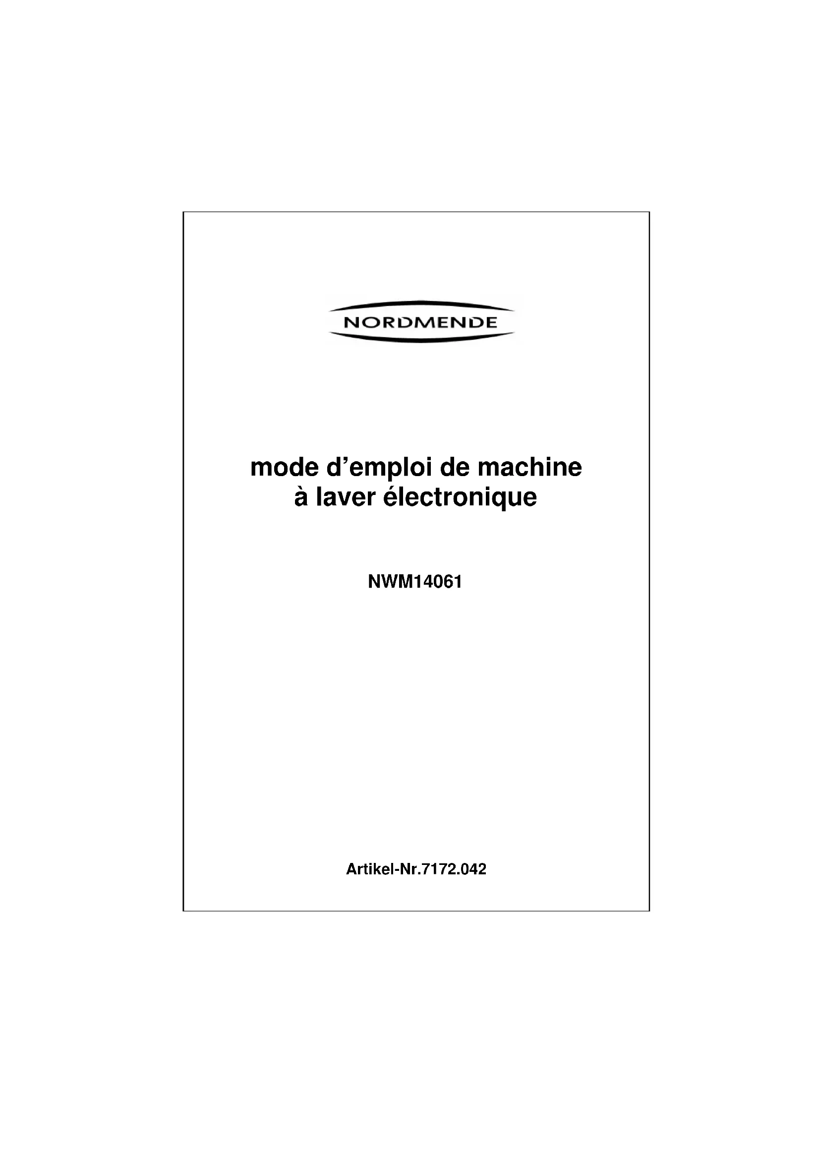 NWM14061 - Machine à laver NORDMENDE - Notice d'utilisation et mode d'emploi gratuit
