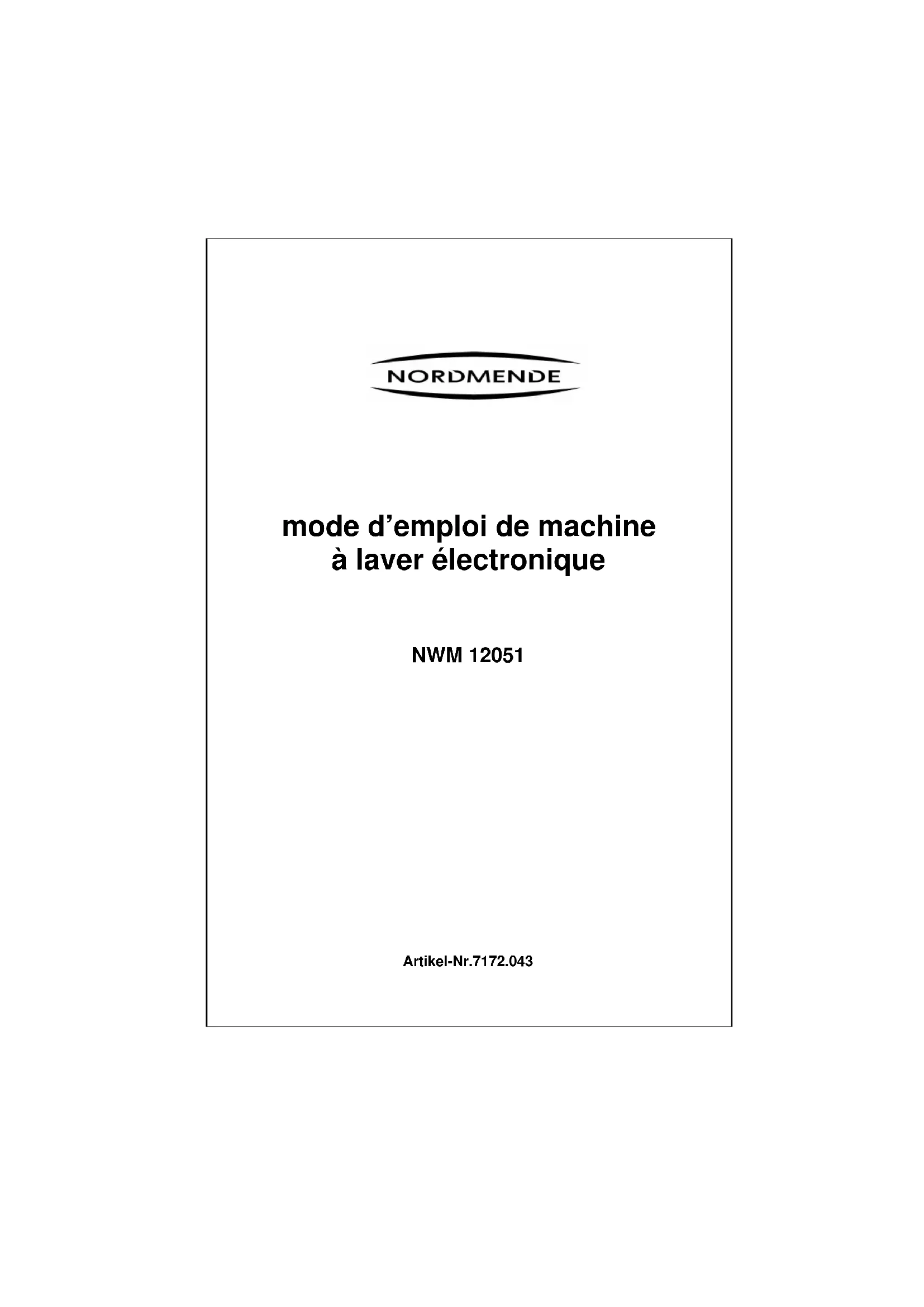 NWM12051 - Machine à laver NORDMENDE - Notice d'utilisation et mode d'emploi gratuit