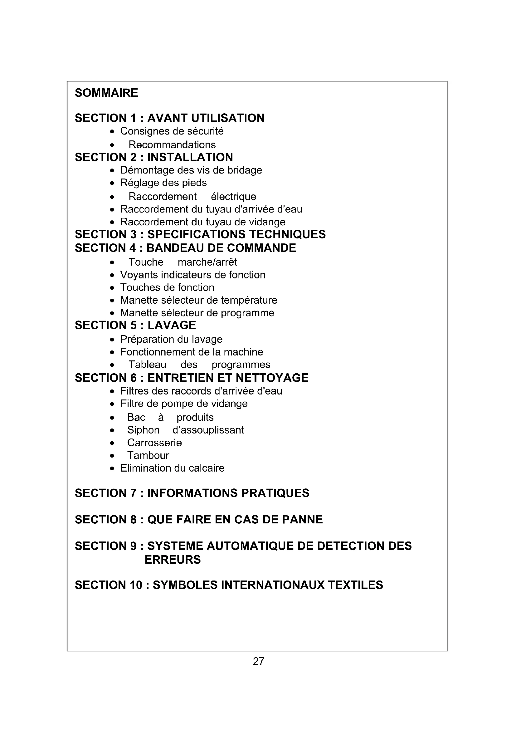 - Votre machine est destinée à un usage domestique. La garantie ne s'appliquera pas en cas d'utilisation à des fins professionnelles.