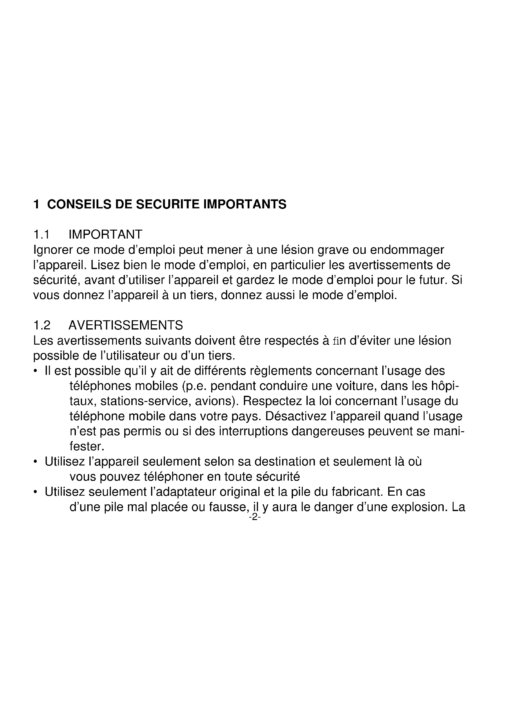 - Le téléphone peut seulement être ouvert pour changer la pile ou la carte SIM. Il n'est pas permitted de changer l'appareil. Ceci menera au déclin du permis d'utilisation et la garantie.