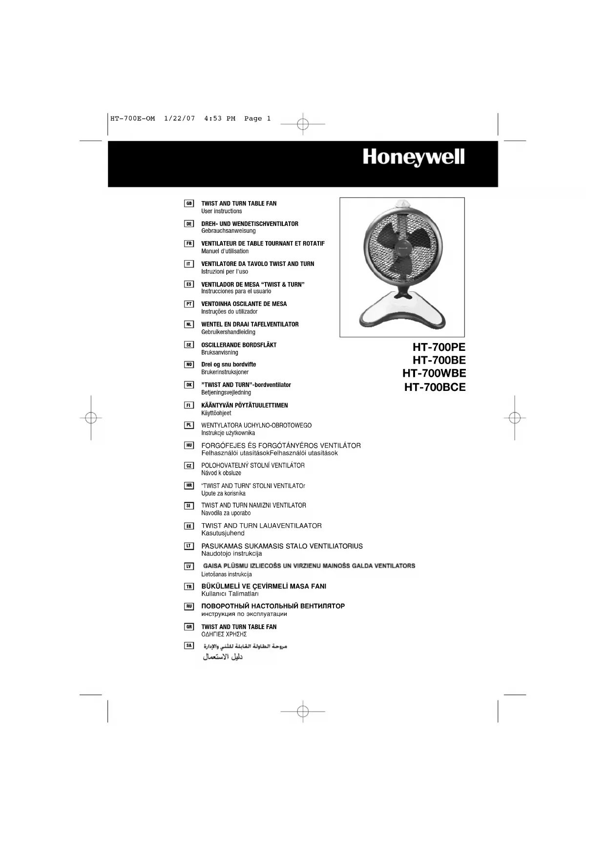 HT700WBE - Ventilateur HONEYWELL - Notice d'utilisation et mode d'emploi gratuit
