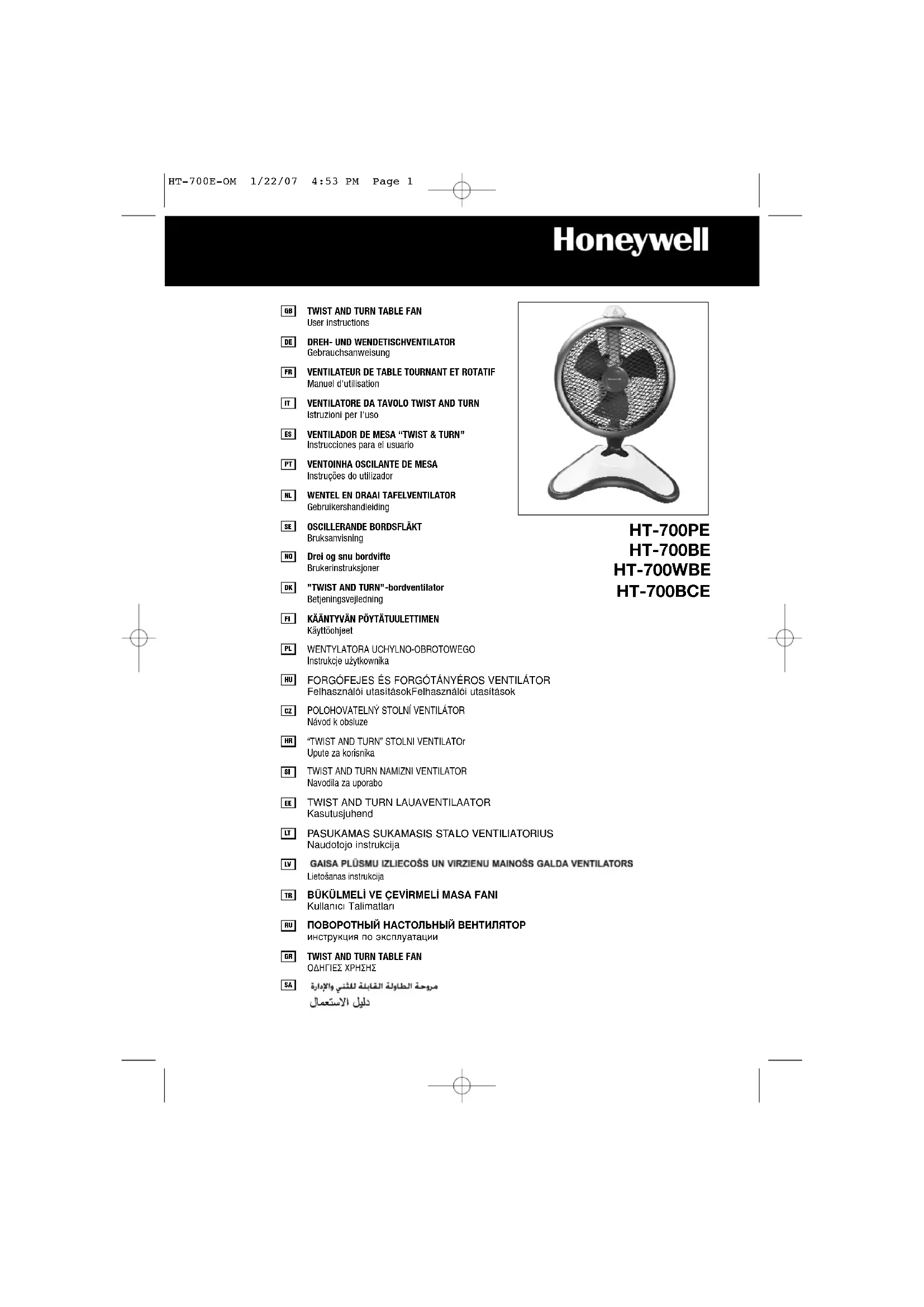 HT700BE - Ventilateur HONEYWELL - Notice d'utilisation et mode d'emploi gratuit