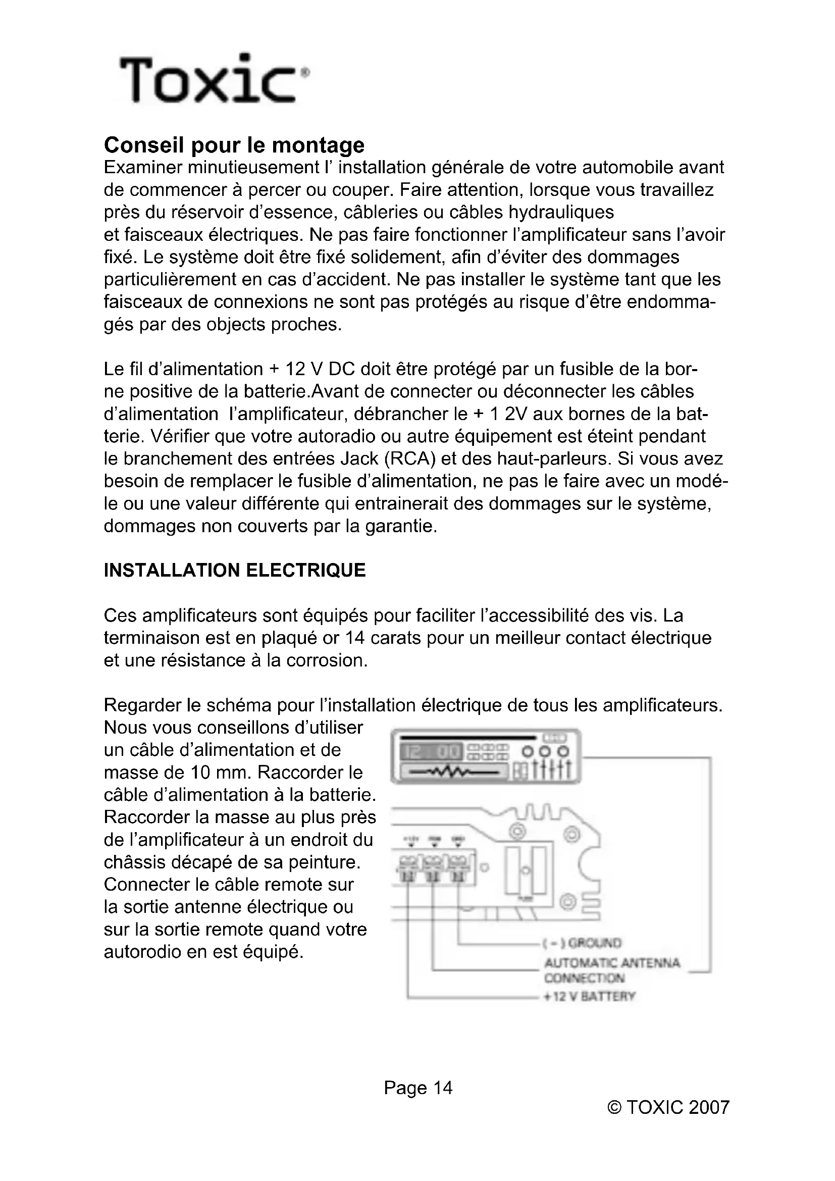 12.00 (-) GROUND AUTOMATIC ANTENNA CONNECTION +12 V BATTERYToxic®
