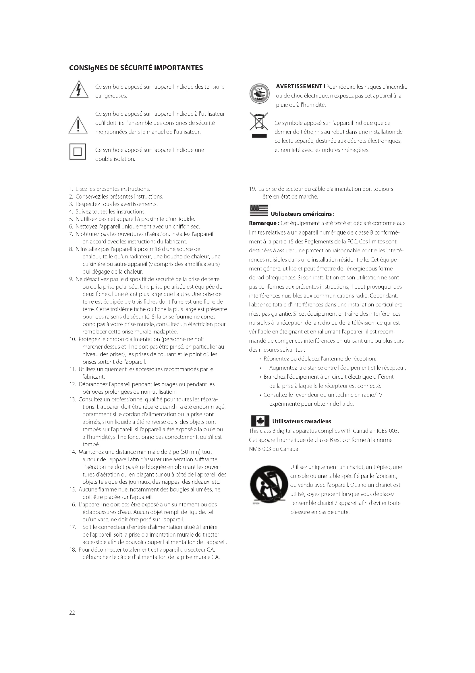 18. Pour déconnecter totalement cet appareil du secteur CA,