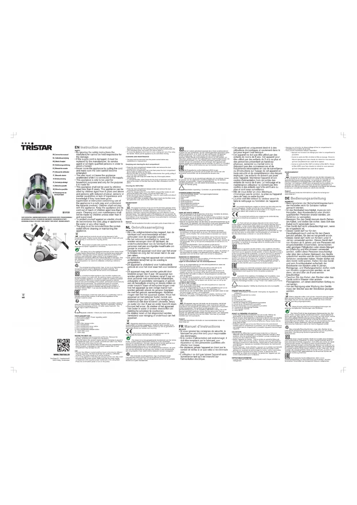 SZ3135 - Aspirateur TRISTAR - Notice d'utilisation et mode d'emploi gratuit