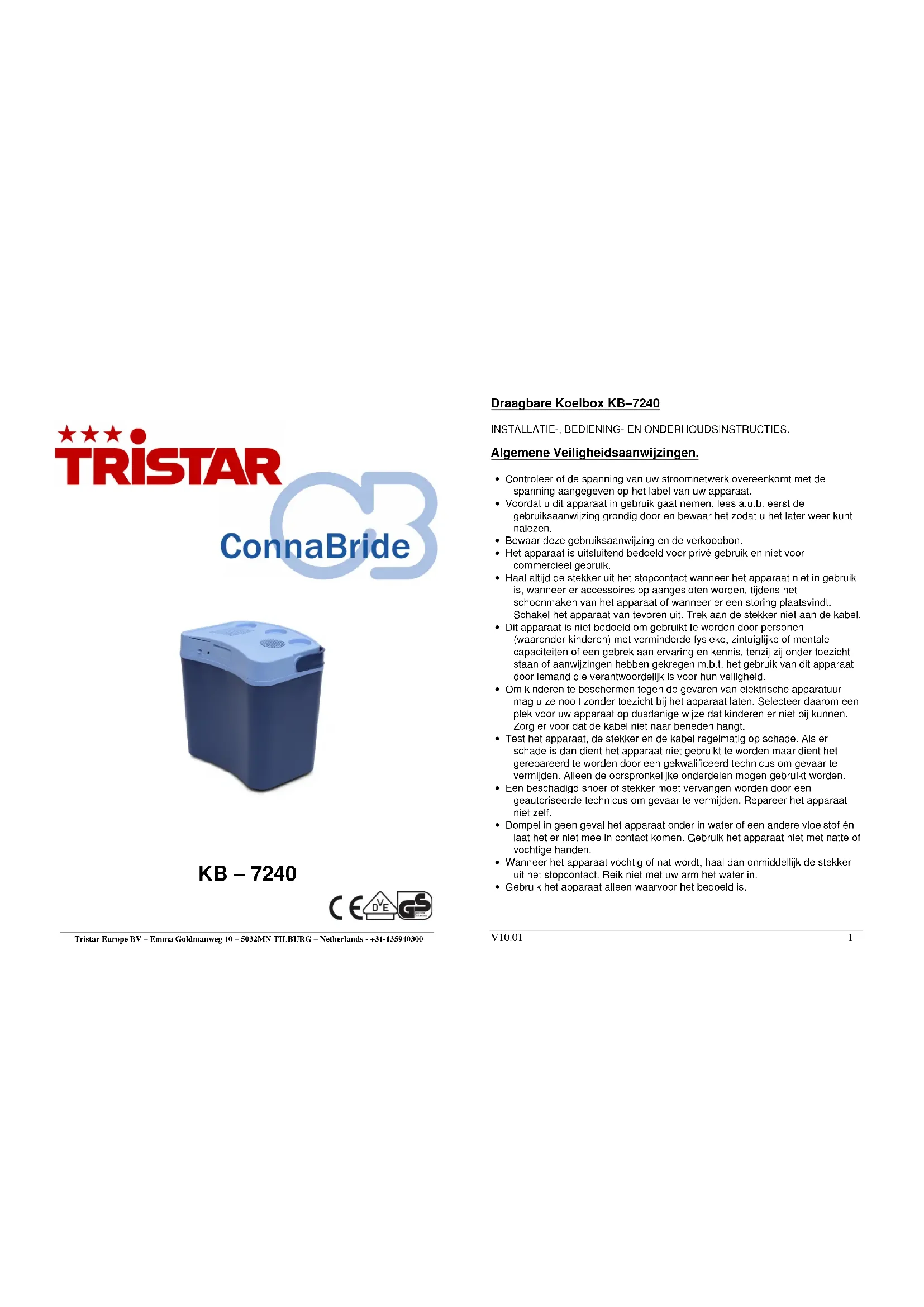 KB7240 - Frigo TRISTAR - Notice d'utilisation et mode d'emploi gratuit