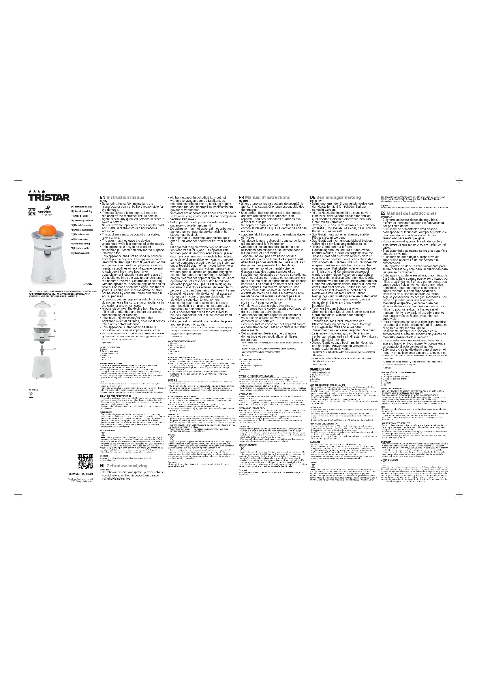 CP2268 - Extracteur de jus TRISTAR - Notice d'utilisation et mode d'emploi gratuit