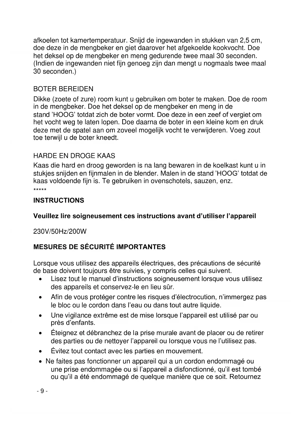 INSTRUCTIONS Veuillez lire soigneusement ces instructions avant d’utiliser l’appareil 230V/50Hz/200W