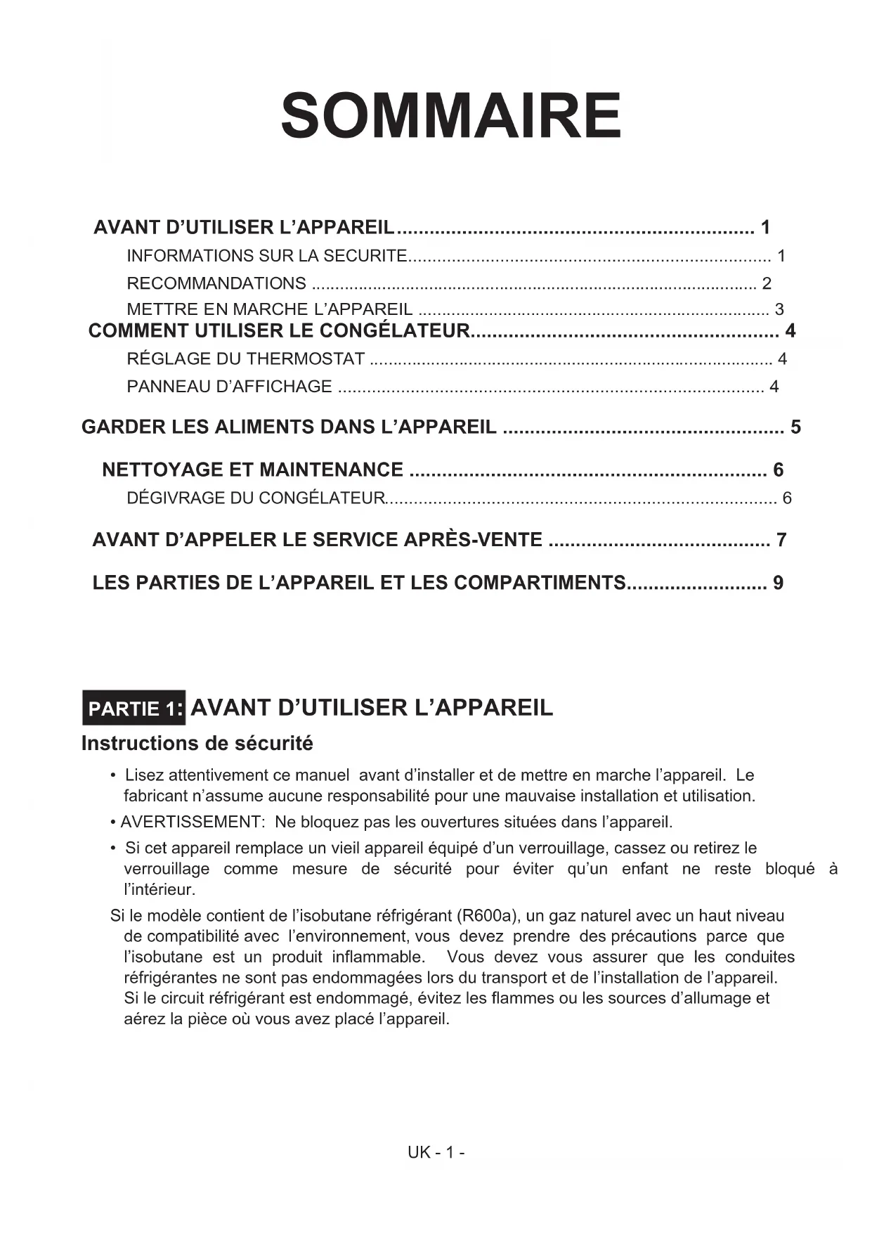 - Ne mangez pas la glace, qui vient d’être retirée du congélateur.UK - 3 -