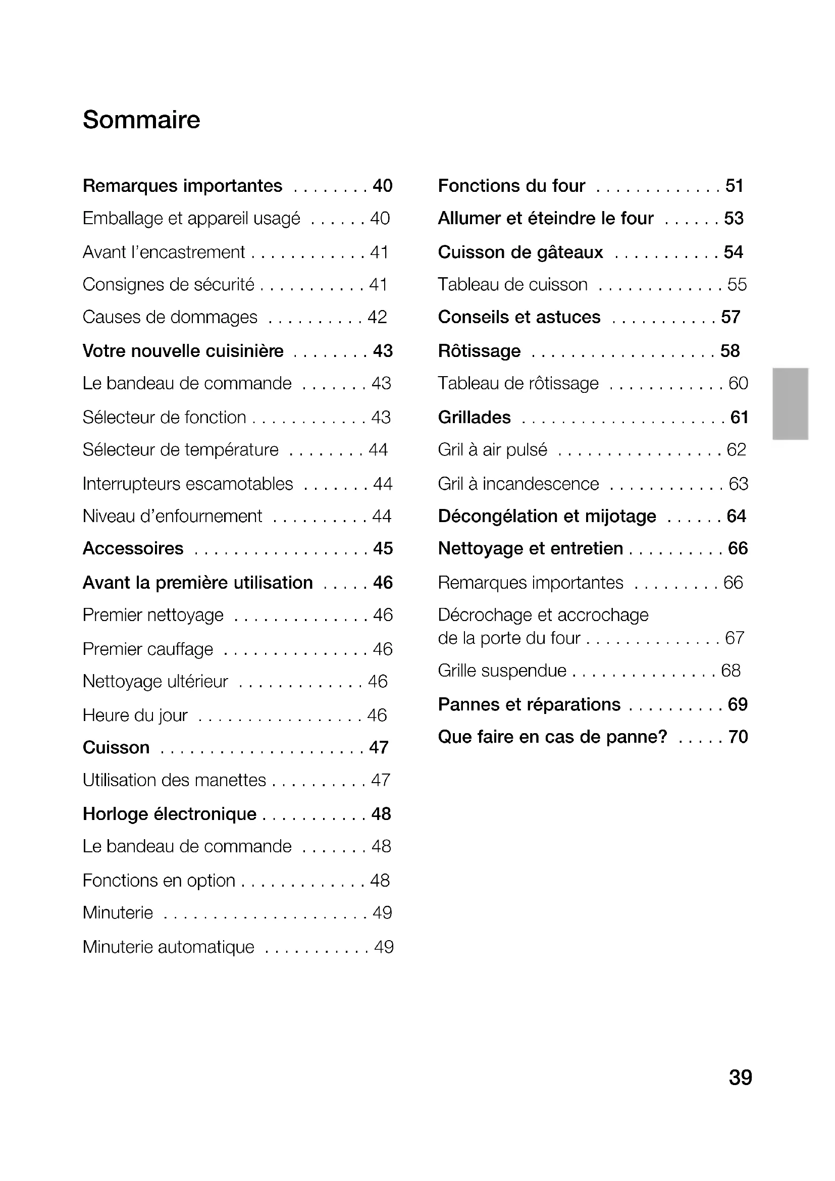 - Votre nouvelle cuisinière p. 43