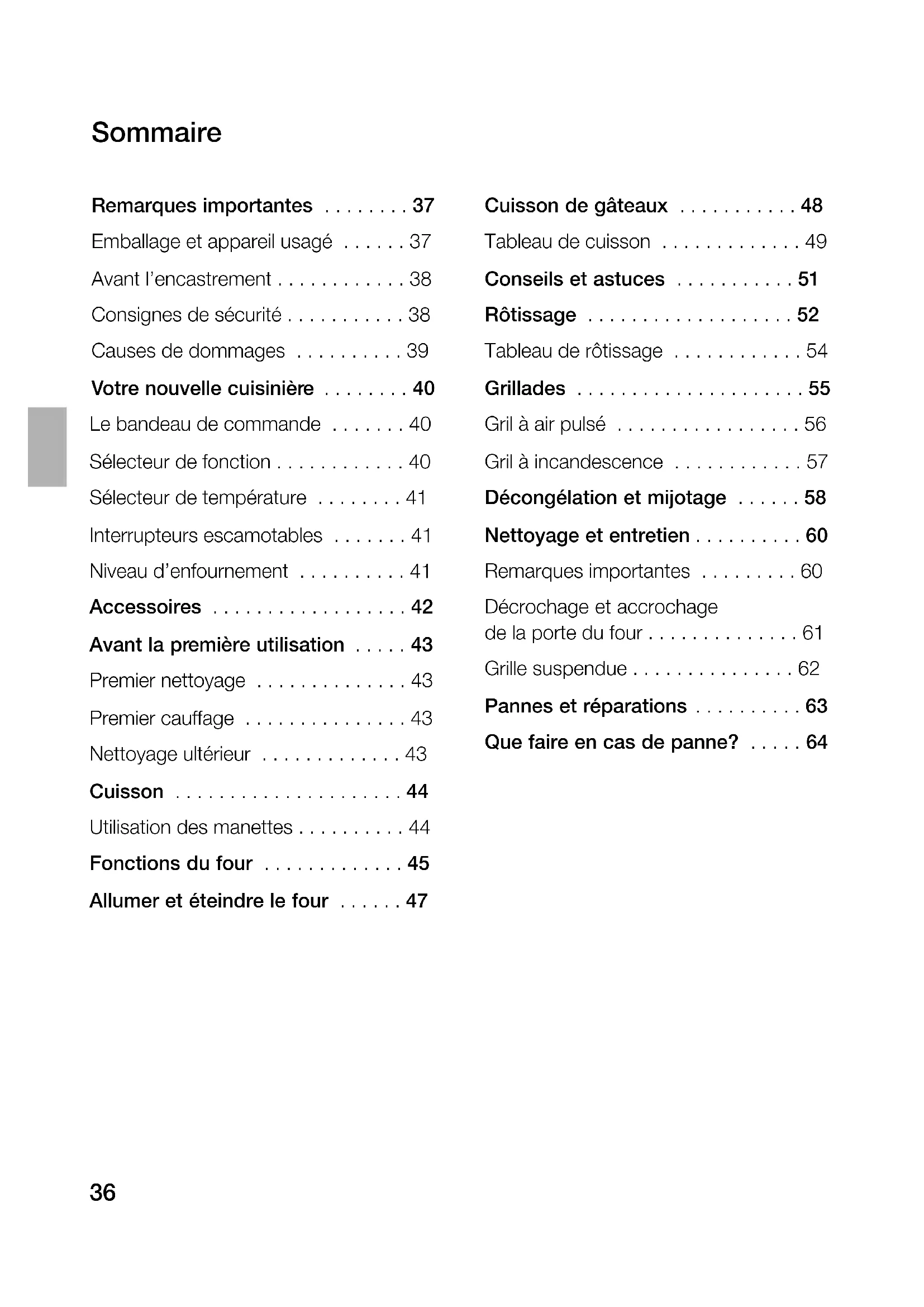 - Votre nouvelle cuisinière p. 40