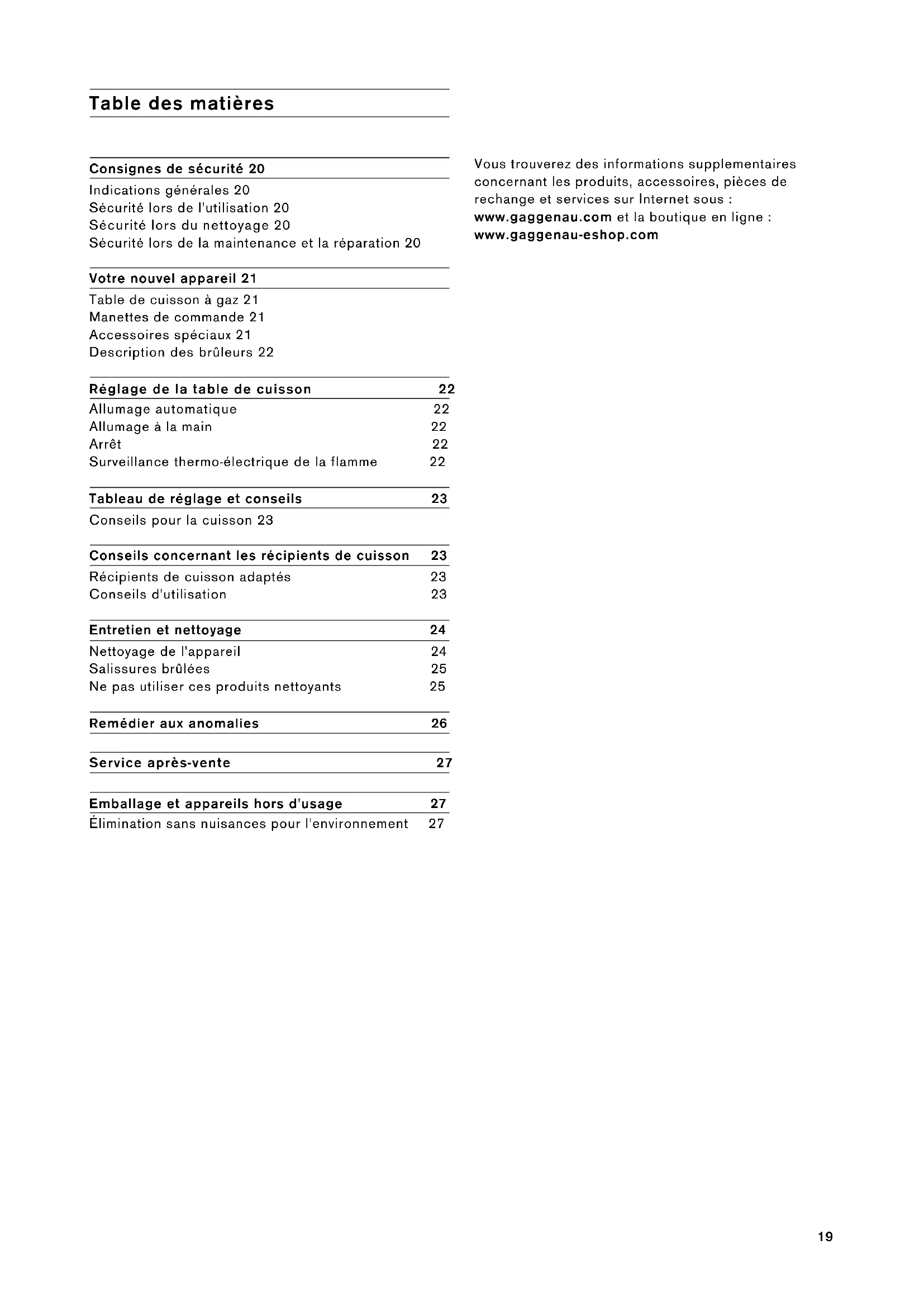 Consignes de sécurité 20