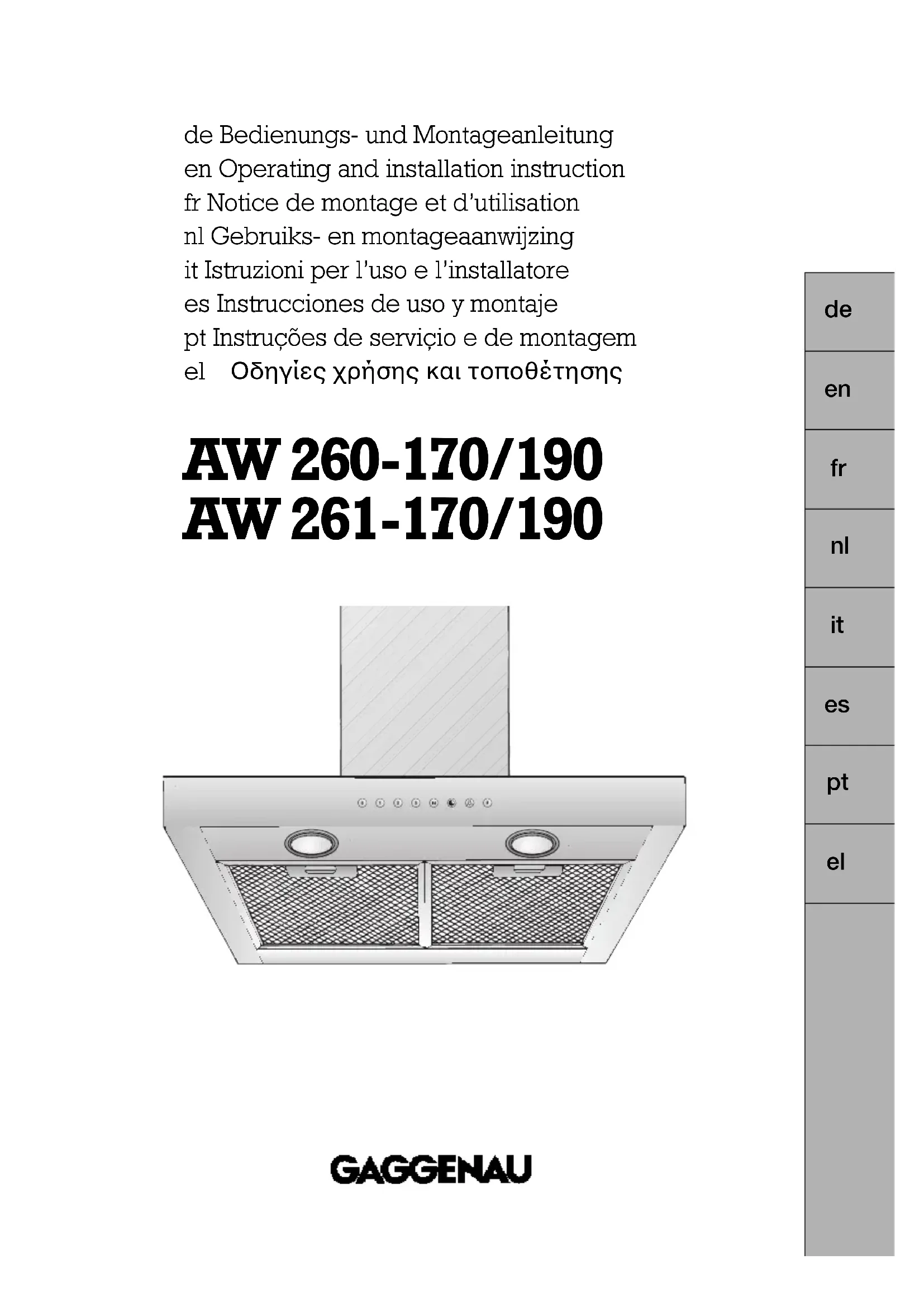 AW260170 - Hotte GAGGENAU - Notice d'utilisation et mode d'emploi gratuit