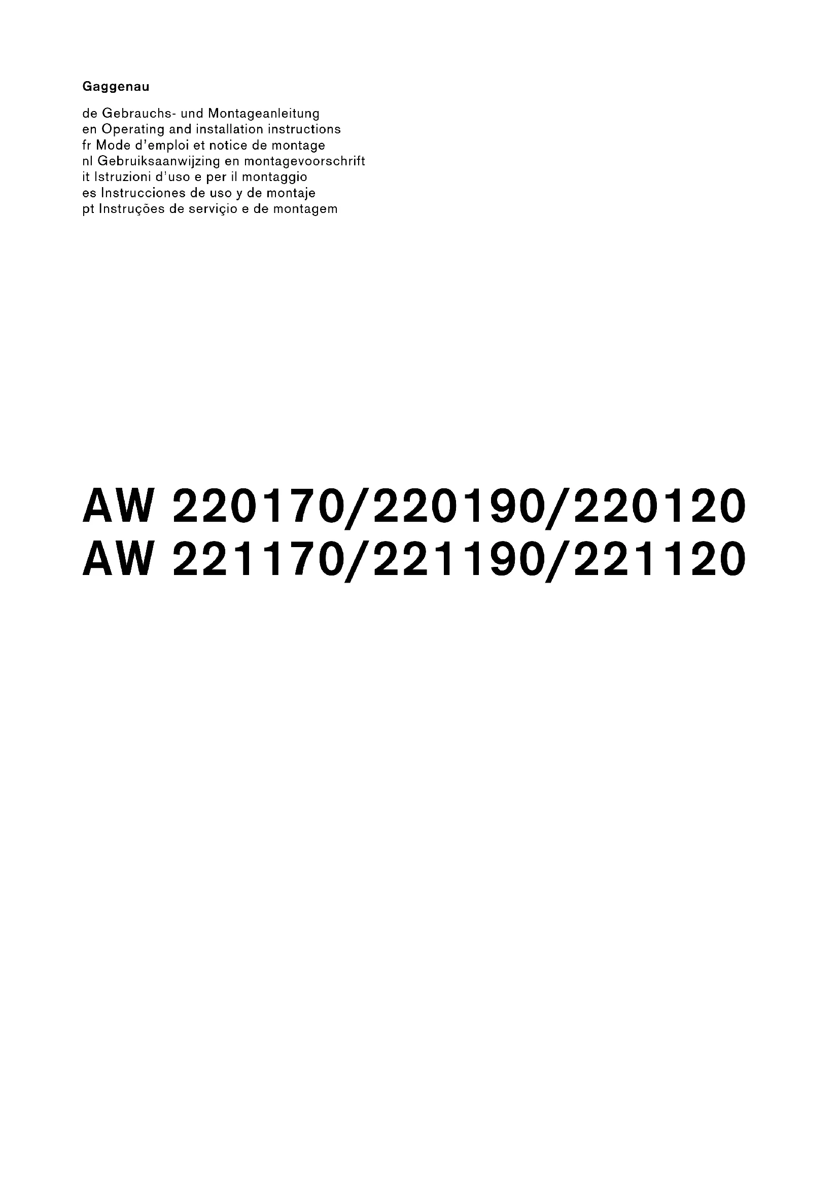 Retrouvez gratuitement la notice de l'appareil AW 221170 GAGGENAU au format PDF.