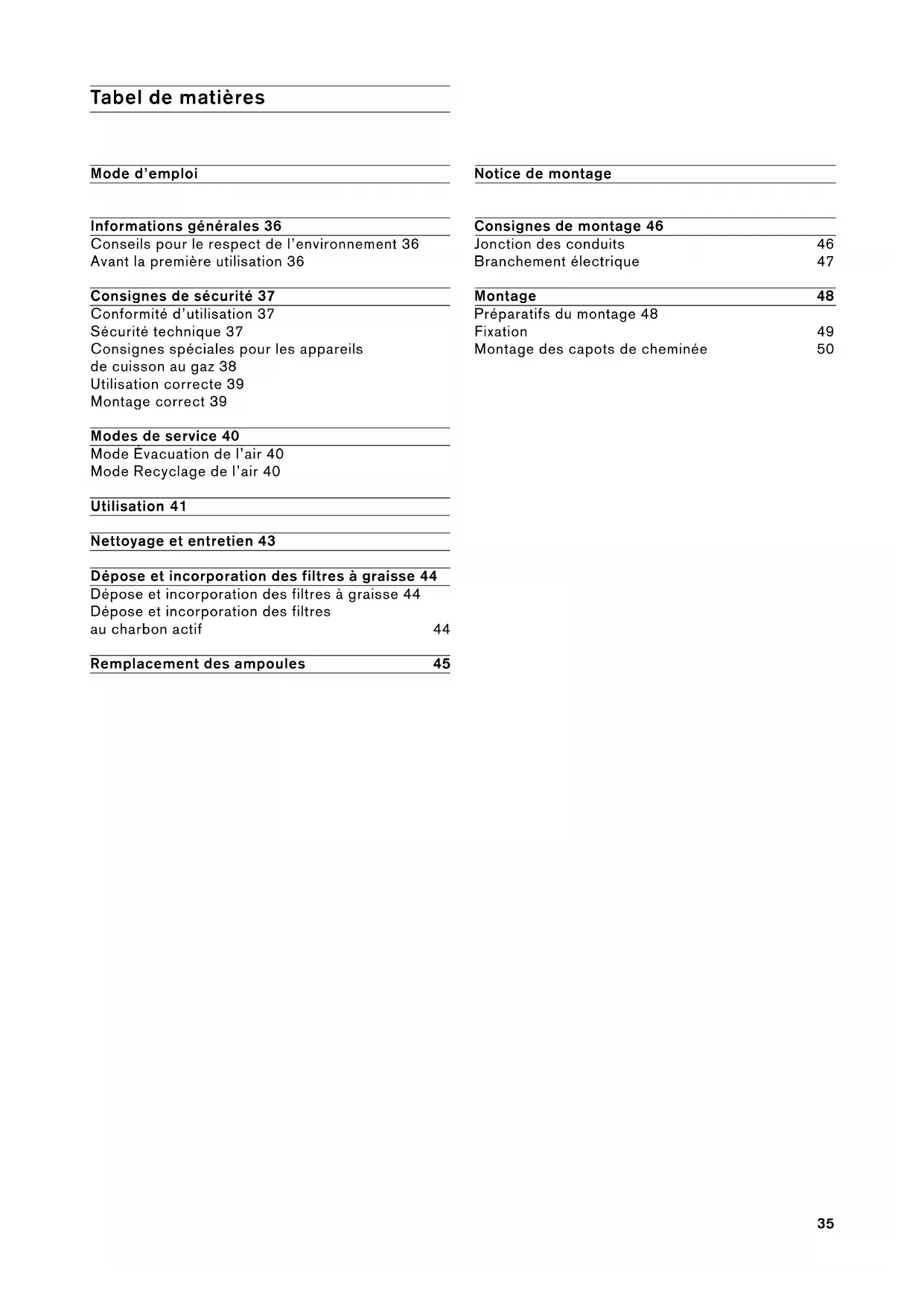 Le montage (y compris le branchement electrique), la maintenance ou la réparation de la hotte aspirante sont des opérations exclusivement réservées à un spécialiste. Dans chaque cas, il faudramettre la hotte aspirante hors tension en débranchant la fiche mâle ou en mettant le disjoncteur hors tension!