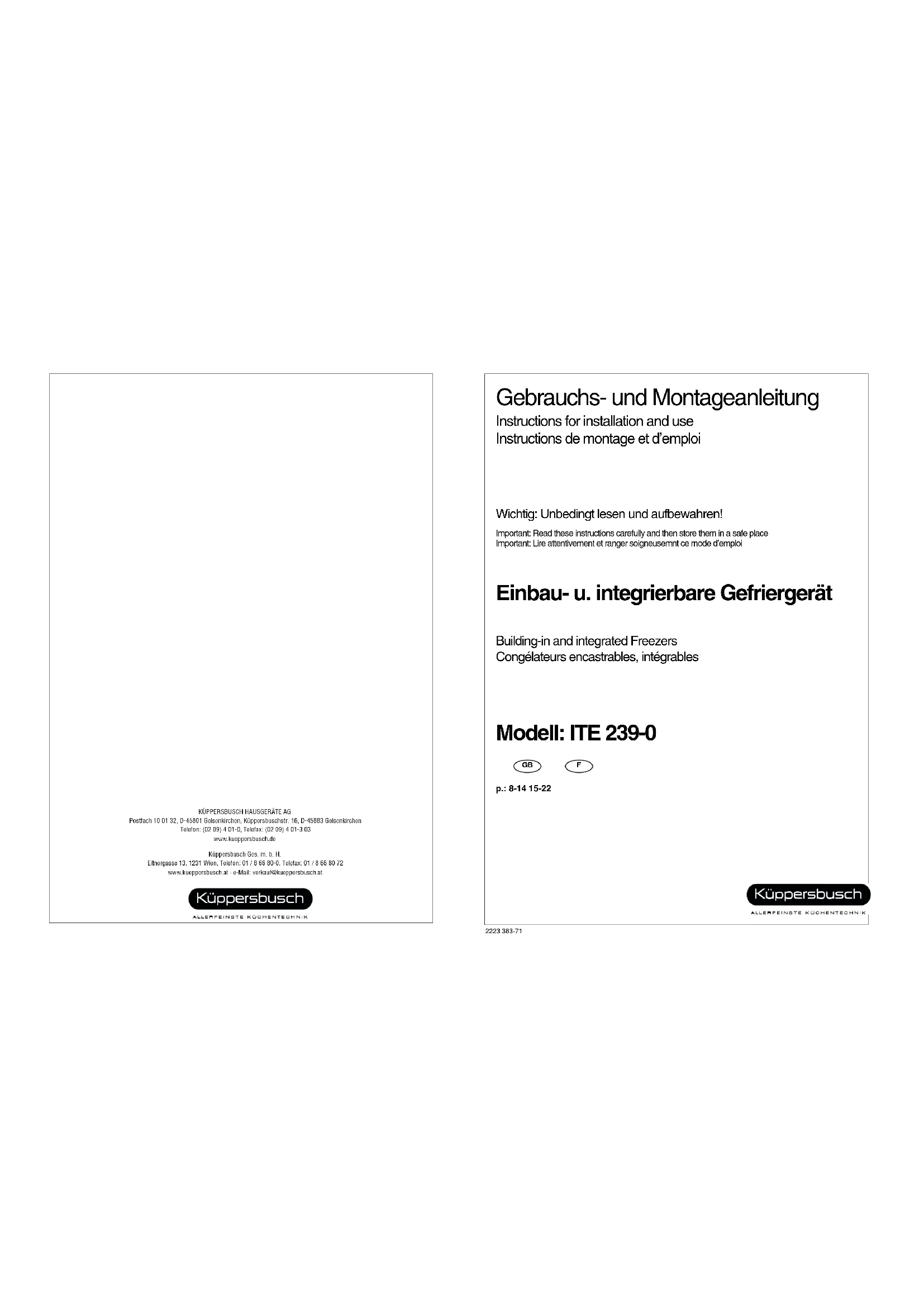 Retrouvez gratuitement la notice de l'appareil ITE 2390 Küppersbusch au format PDF.