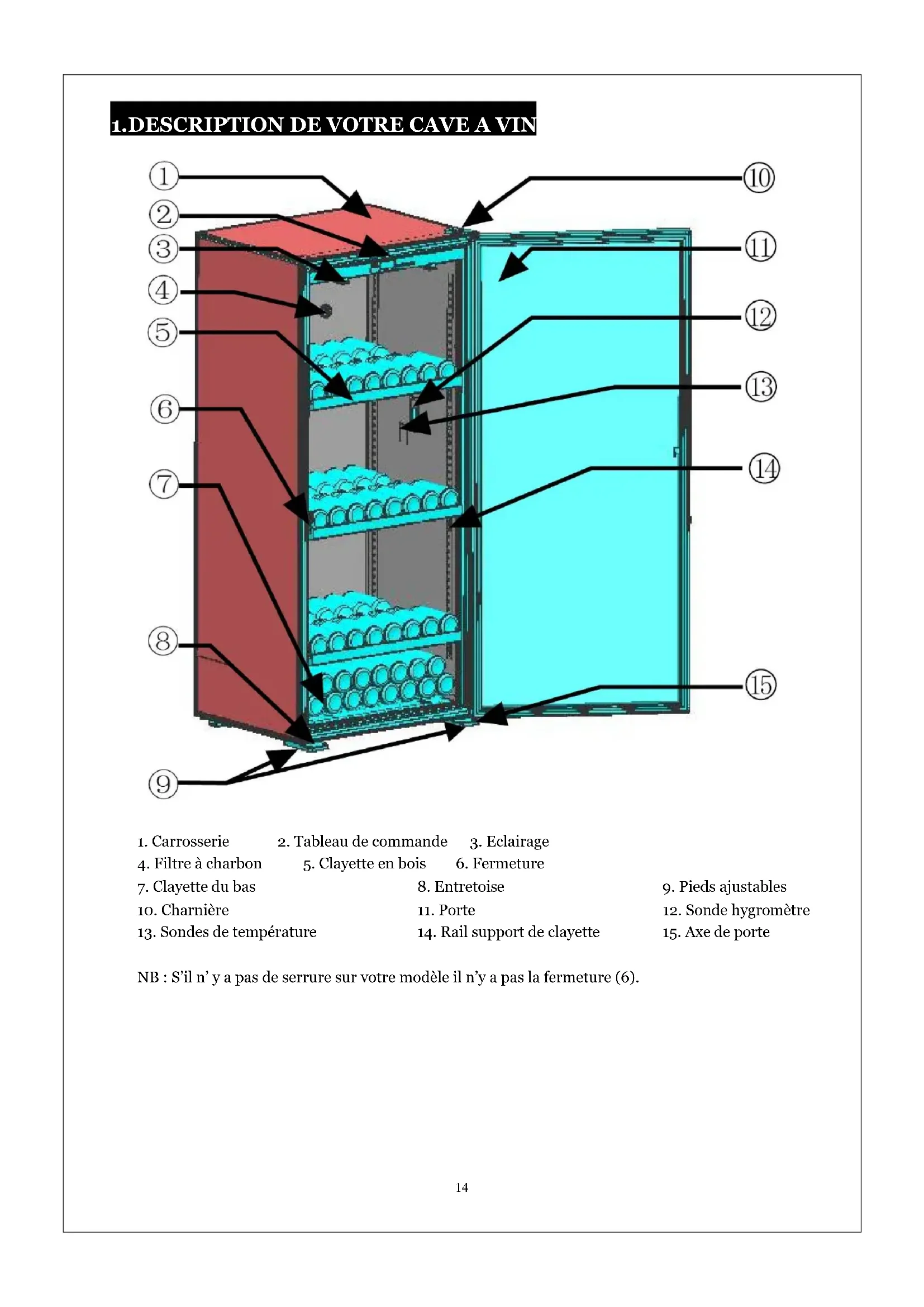 NB : S’il n’ y a pas de serrure sur votre modèle il n’y a pas la fermeture (6).15