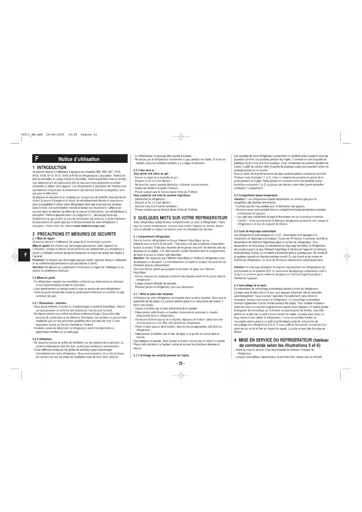 N110 - Réfrigérateur THETFORD - Notice d'utilisation et mode d'emploi gratuit